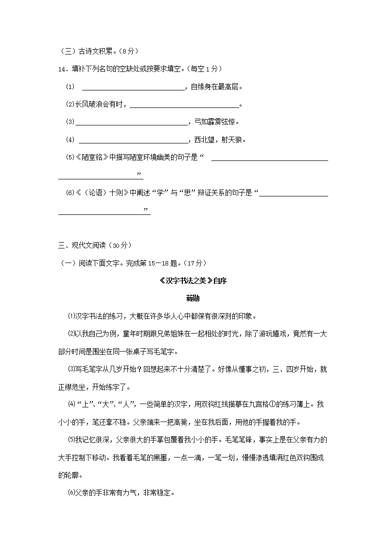 【文档预览】 无忧考网整理发布2015年江西上饶中考语文真题及答案(Word版),前五页预览如下: