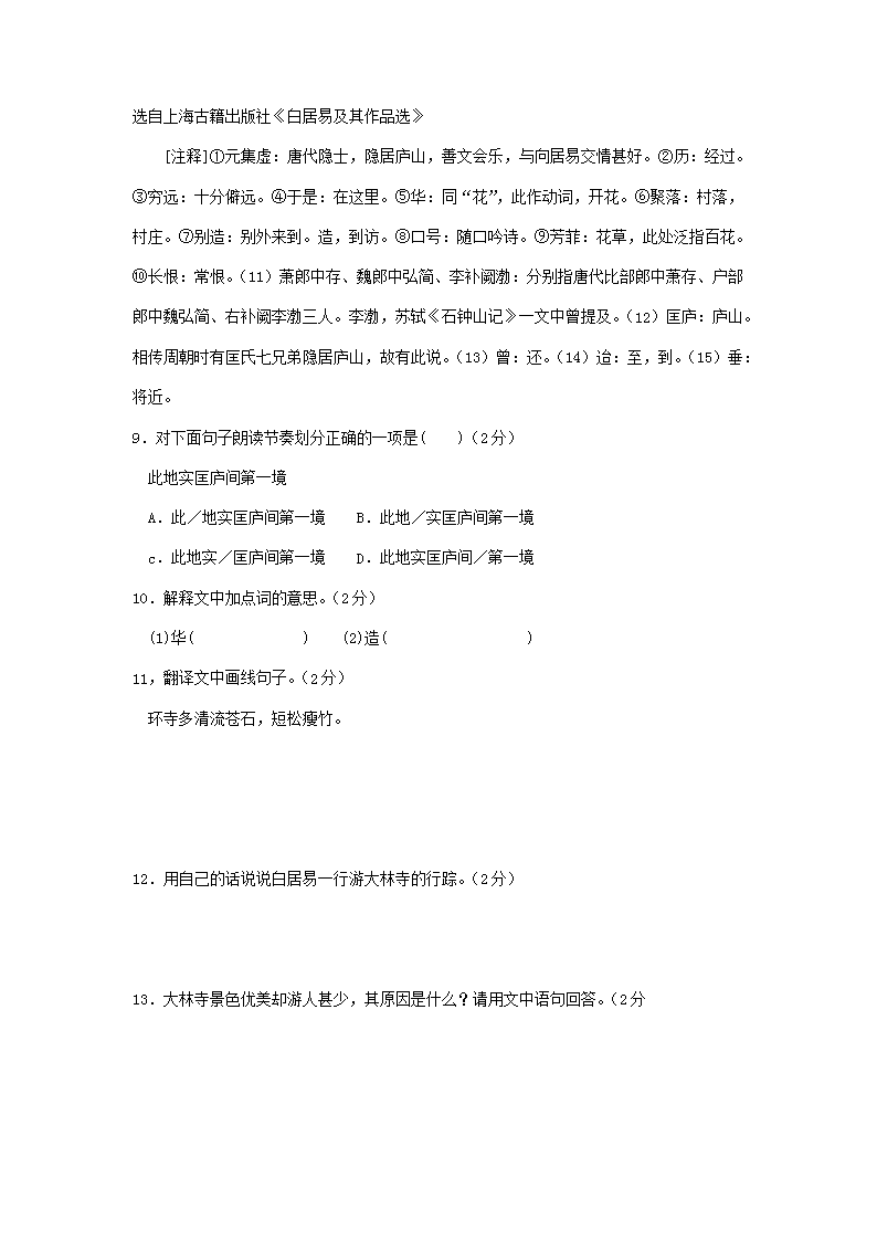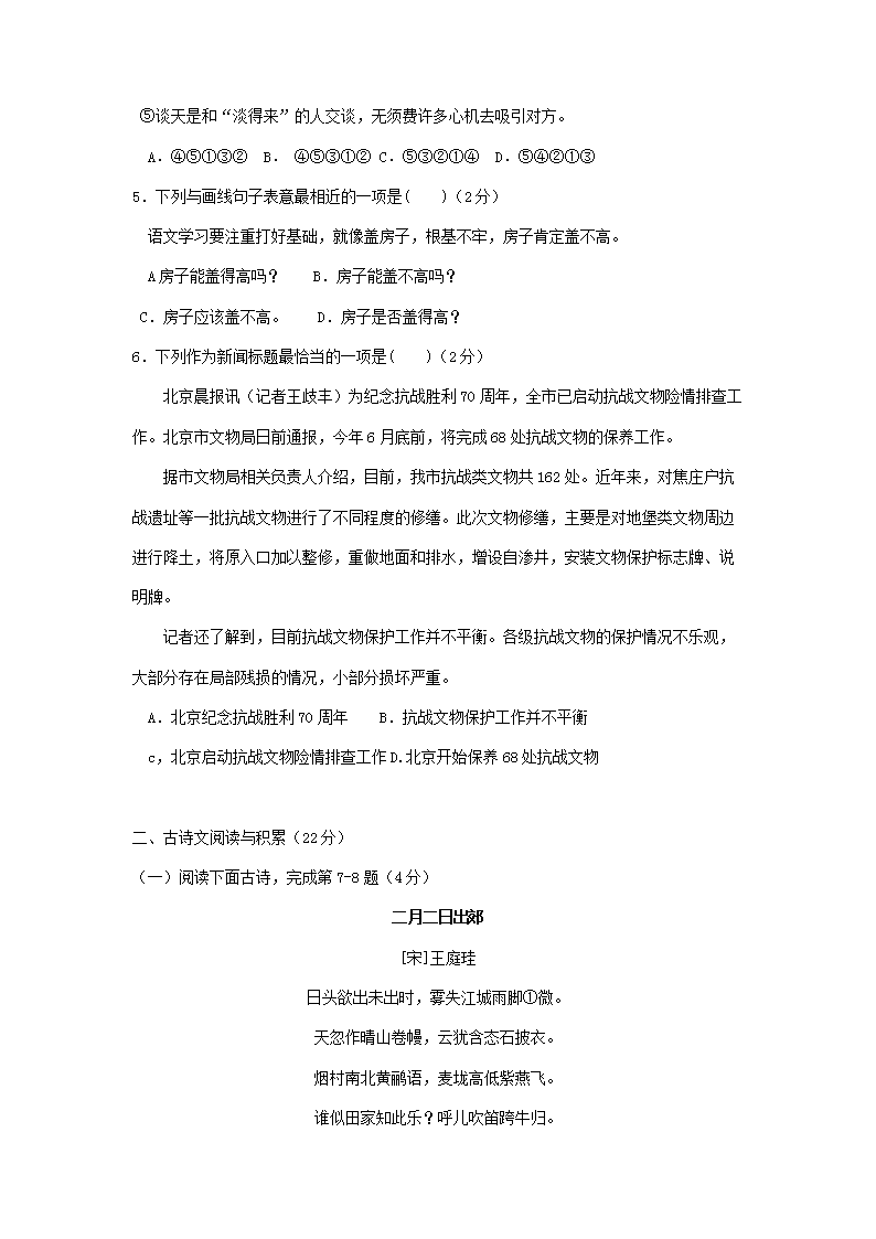 【文档名称】 2015年江西上饶中考语文真题及答案(Word版).doc