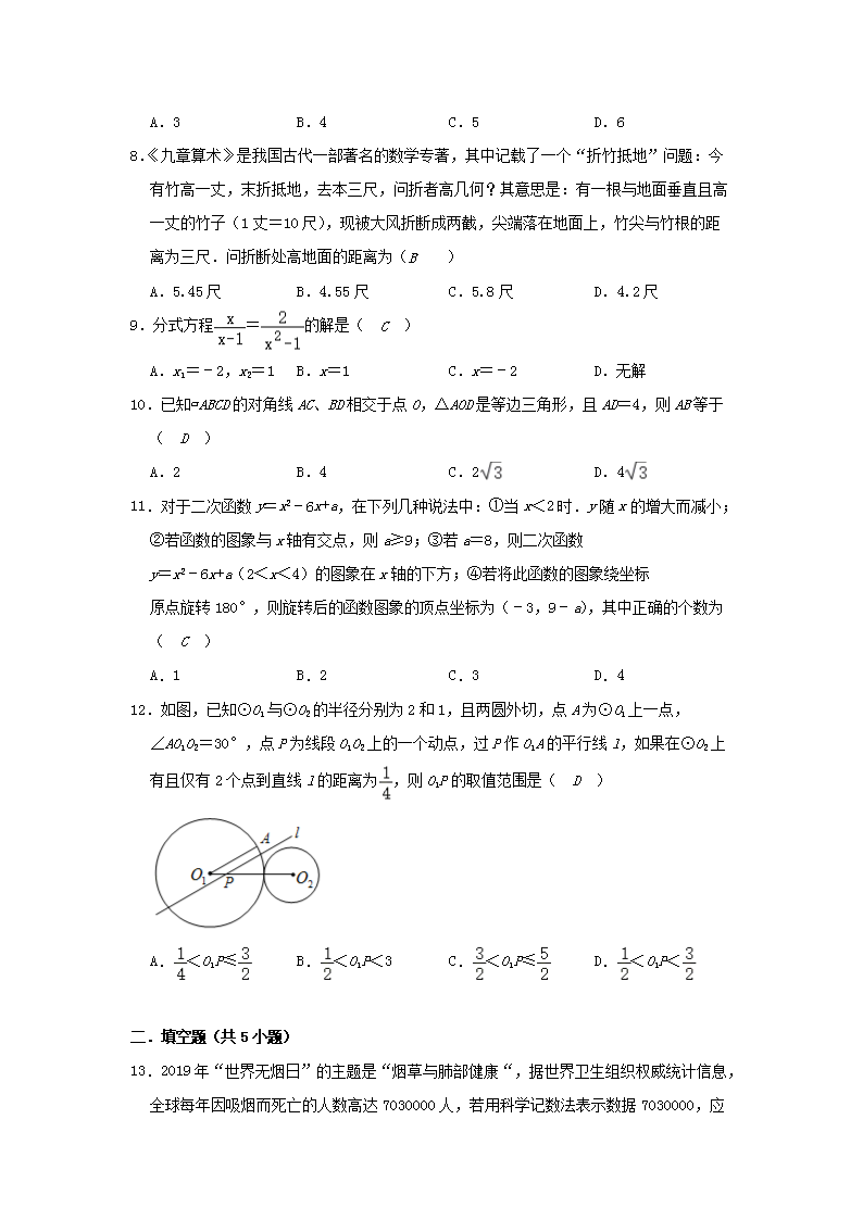 【文档名称】 2019年四川省德阳市中考数学真题及答案(Word版).doc