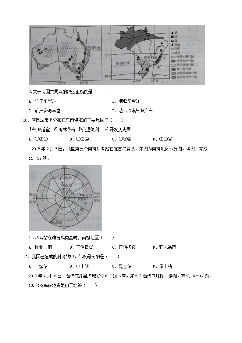 【文档名称】 2019年河南鹤壁中考地理真题及答案(Word版).doc