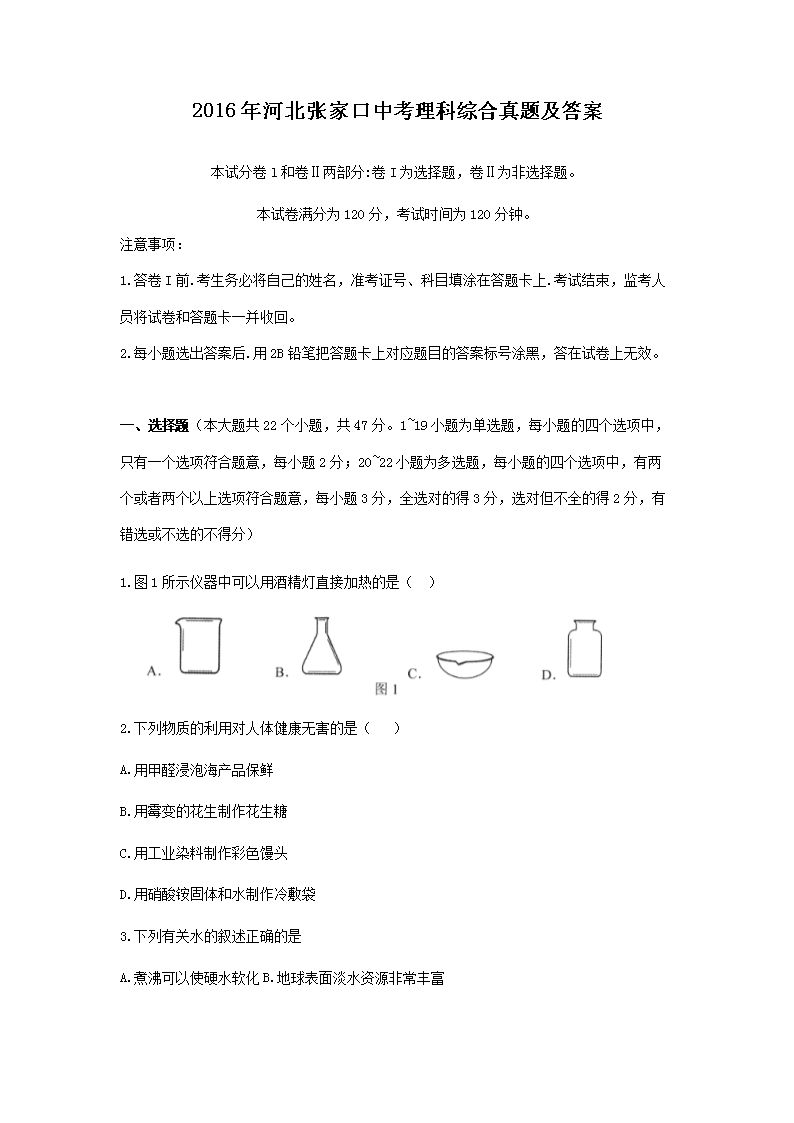 【文档名称】 2016年河北张家口中考理科综合真题及答案(Word版).doc