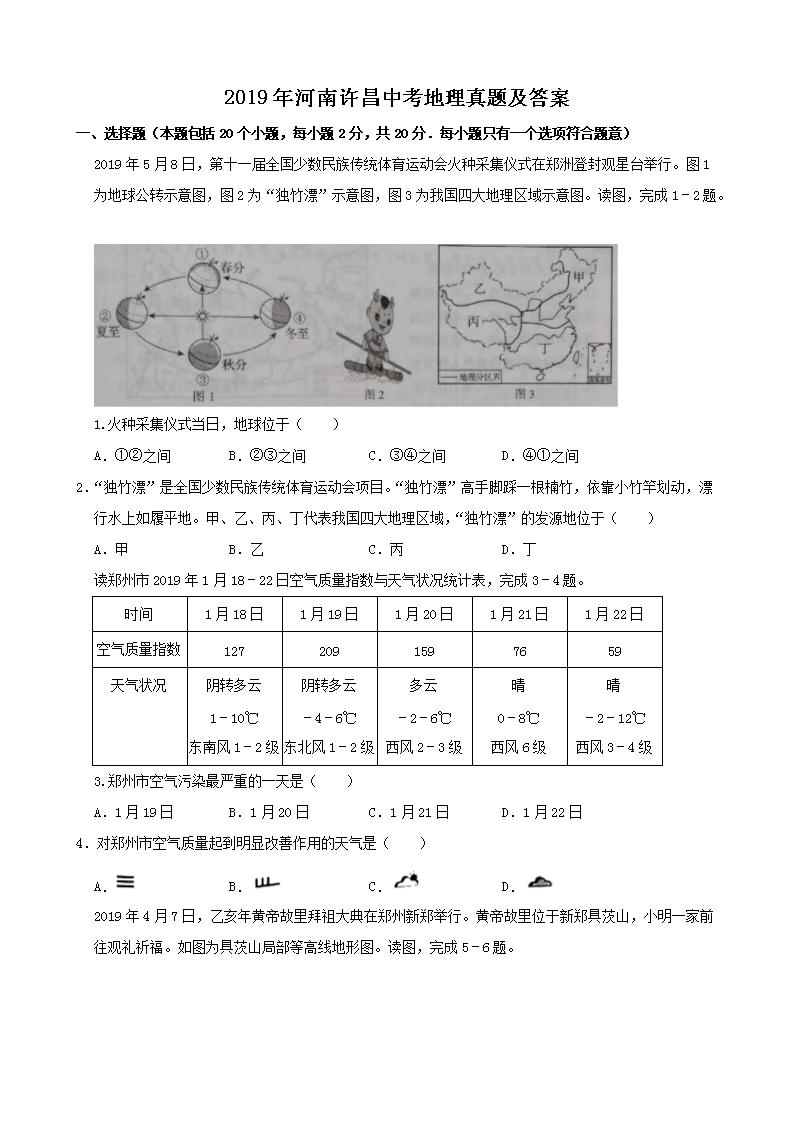 【文档预览】 无忧考网整理发布2019年河南许昌中考地理真题及答案(Word版),前五页预览如下: