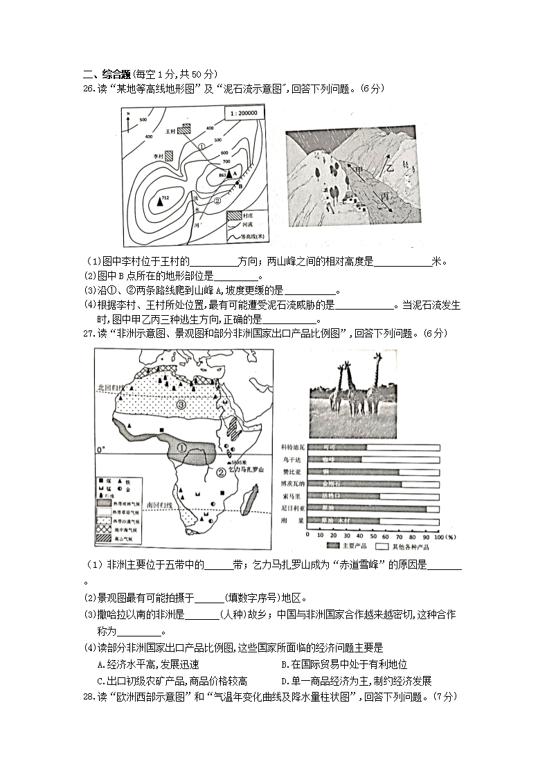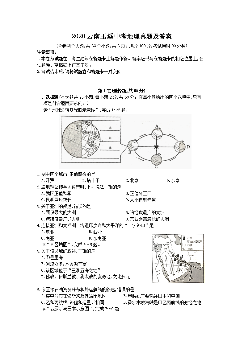 【文档名称】 2020云南玉溪中考地理真题及答案(Word版).doc