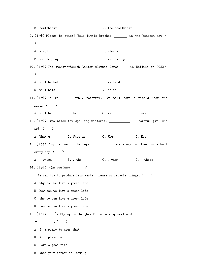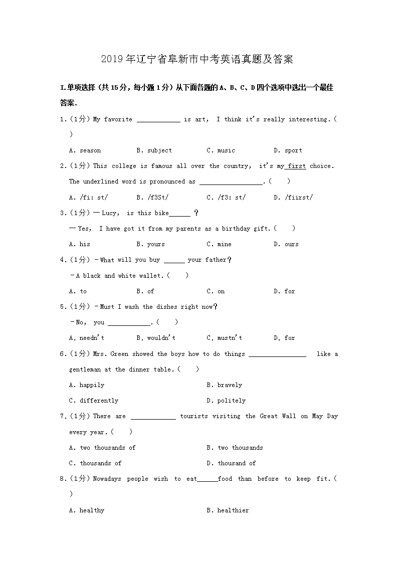 【文档名称】 2019年辽宁省阜新市中考英语真题及答案(Word版).doc