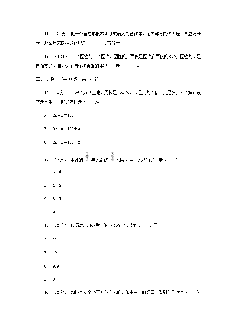 【文档名称】 2020四川内江小升初数学真题及答案A卷(Word版).doc