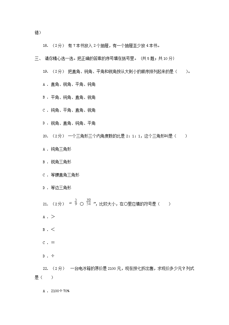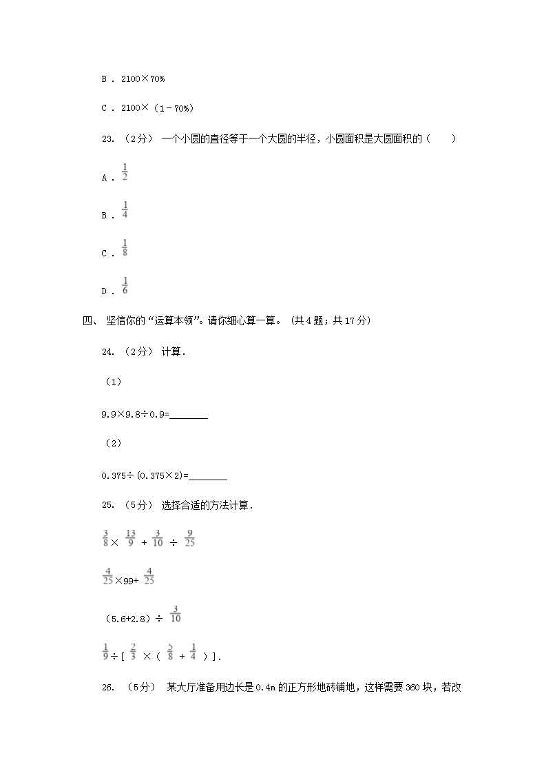 【文档预览】 无忧考网整理发布2020年四川自贡小升初数学真题及答案I卷(Word版),前五页预览如下: