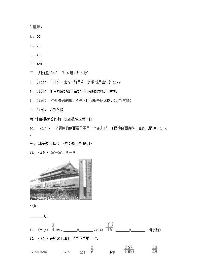 【文档预览】 无忧考网整理发布2020年山东枣庄小升初数学真题及答案A卷(Word版),前五页预览如下: