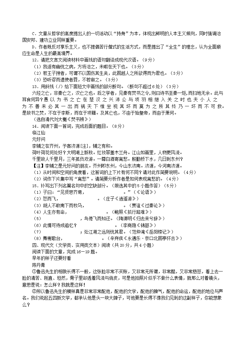 【文档名称】 2012年湖北省荆门市中考语文真题及答案(Word版).doc