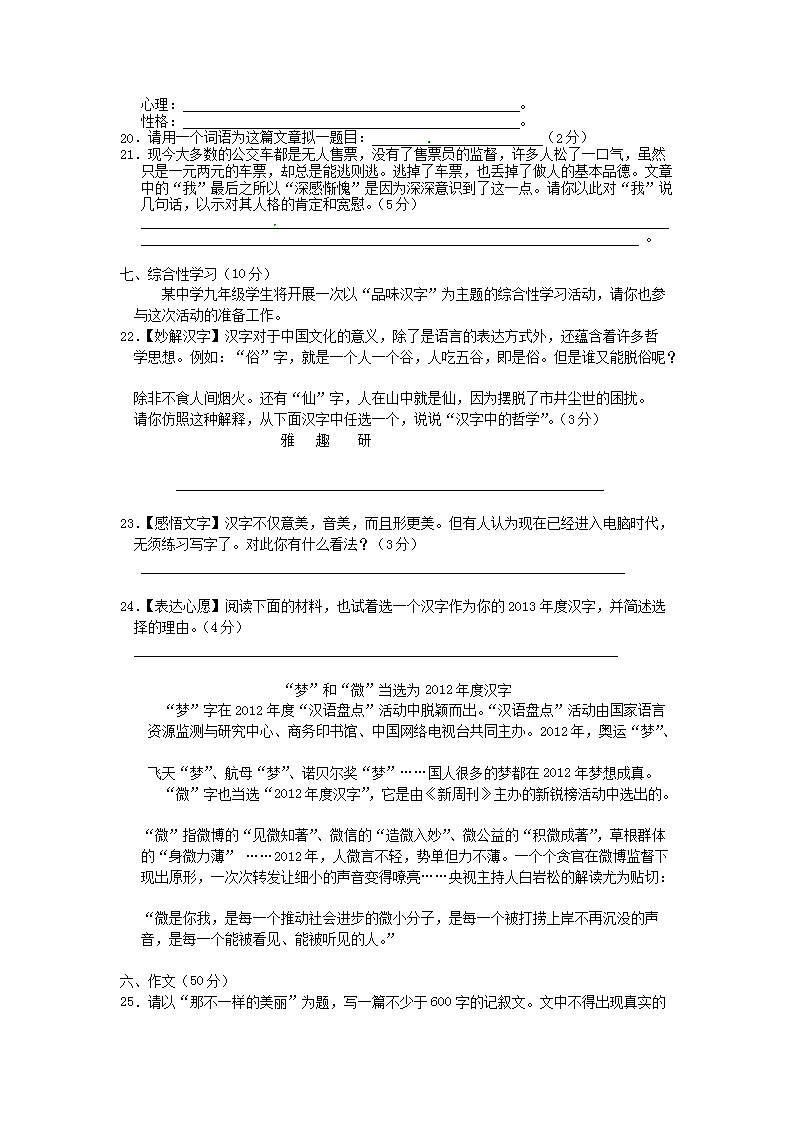 【文档名称】 2013年湖北省荆门市中考语文真题及答案(Word版).doc
