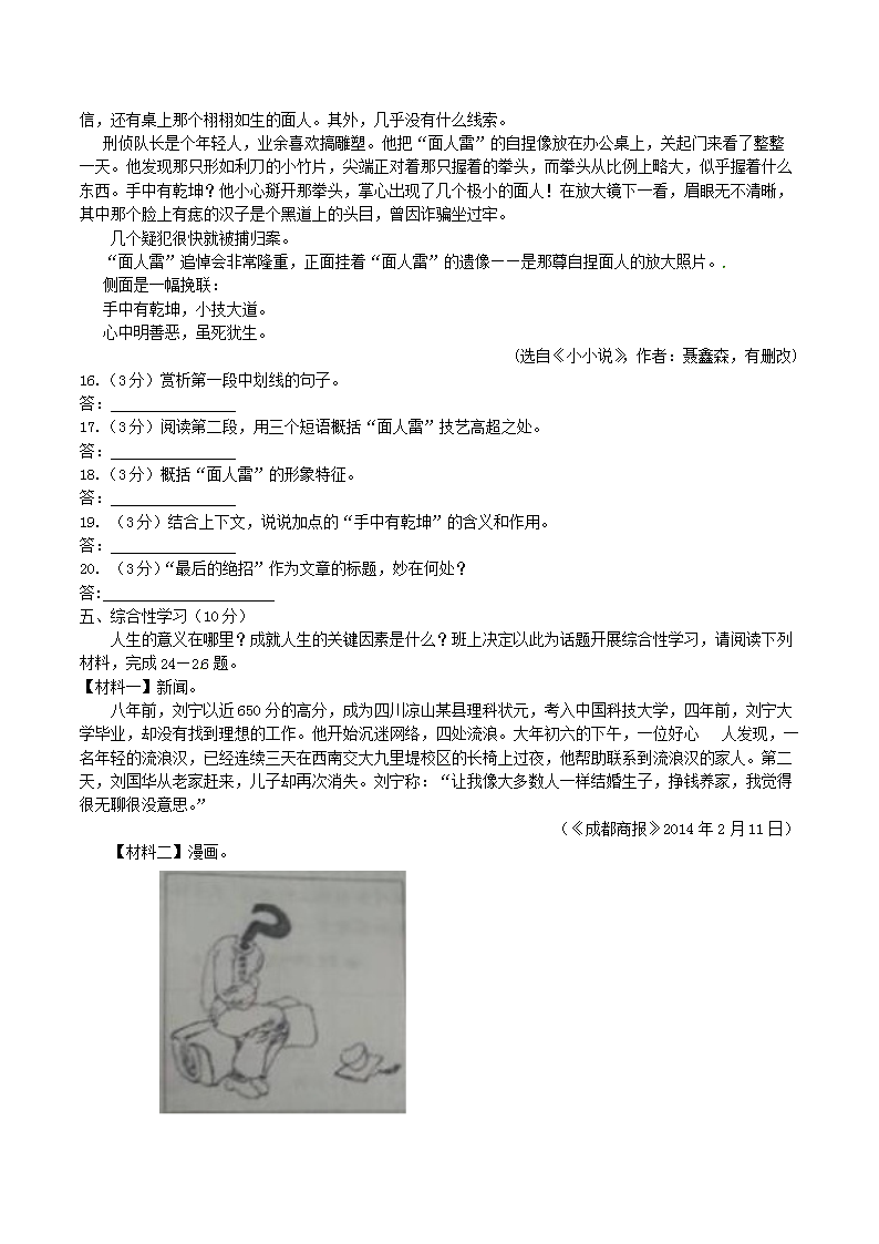 【文档名称】 2014年湖北省荆门市中考语文真题及答案(Word版).doc