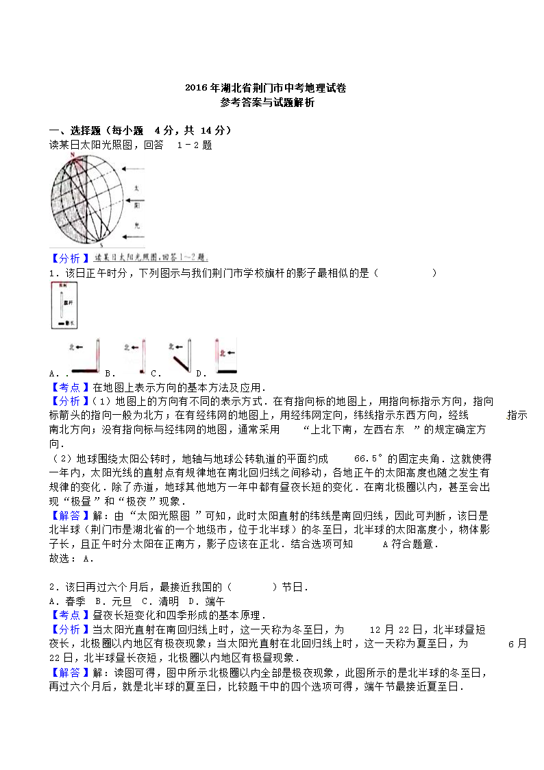 【文档名称】 2016年湖北省荆门市中考地理真题及答案(Word版).doc