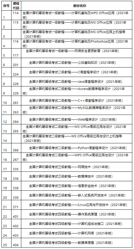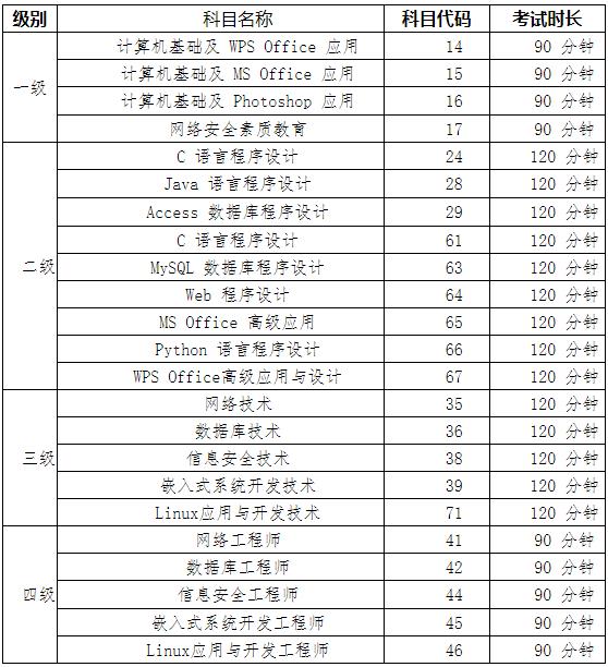 附件:1.2021年全国计算机等级考试开考科目