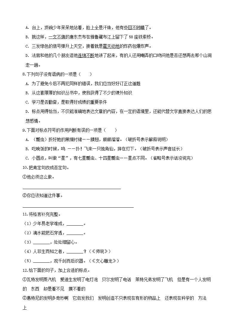 【文档名称】 2019年辽宁锦州市小升初语文真题及答案(Word版).doc