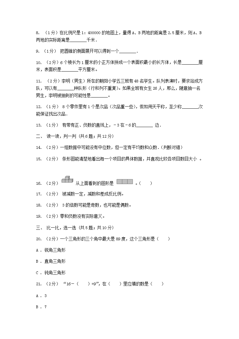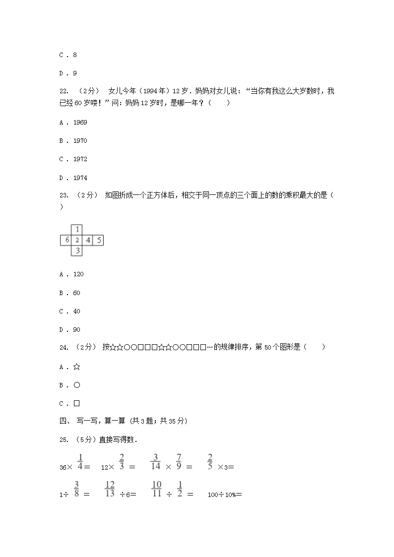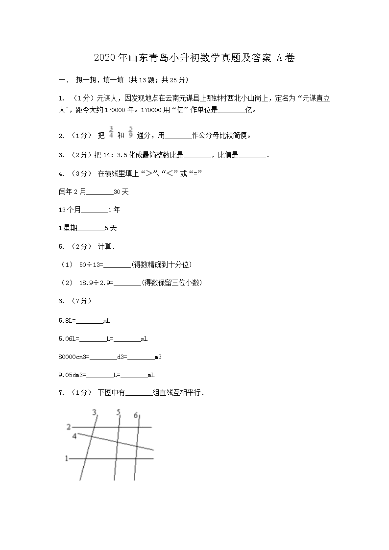 【文档名称】 2020年山东青岛小升初数学真题及答案A卷(Word版).doc