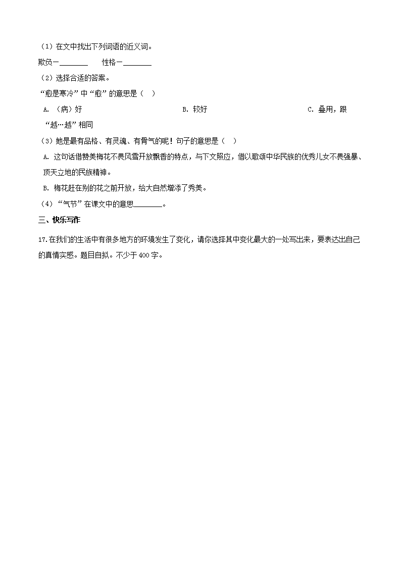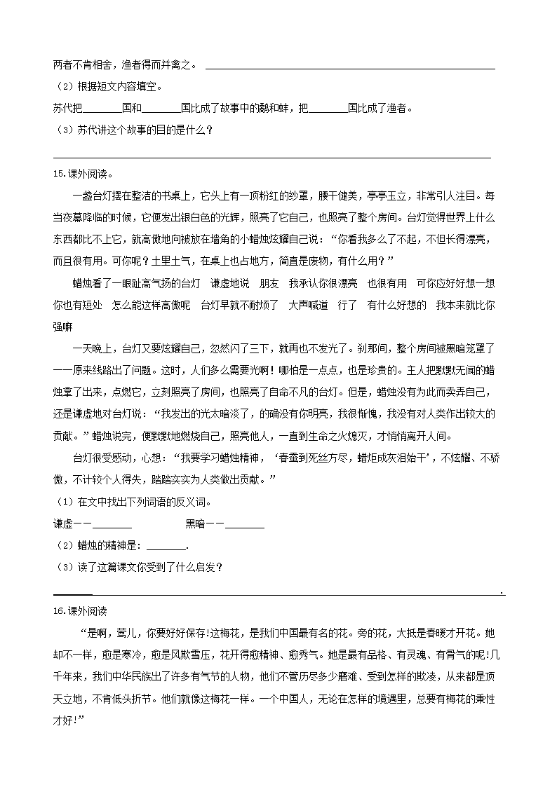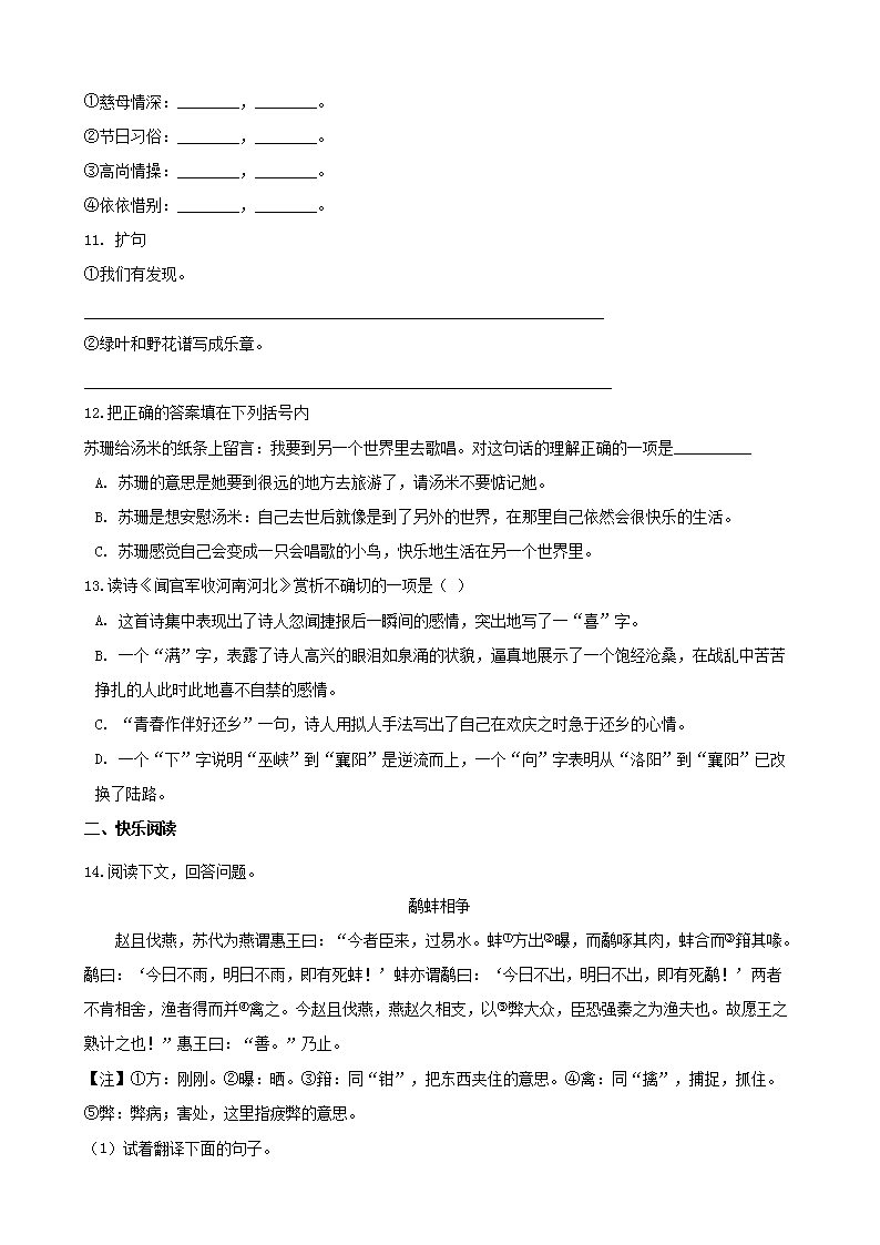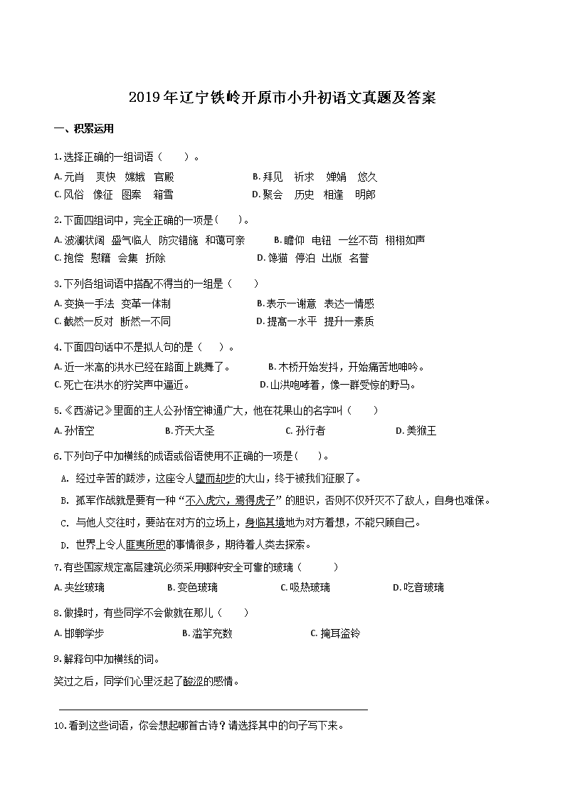 【文档名称】 2019年辽宁铁岭开原市小升初语文真题及答案(Word版).doc