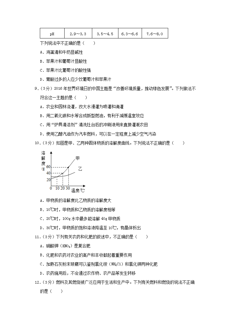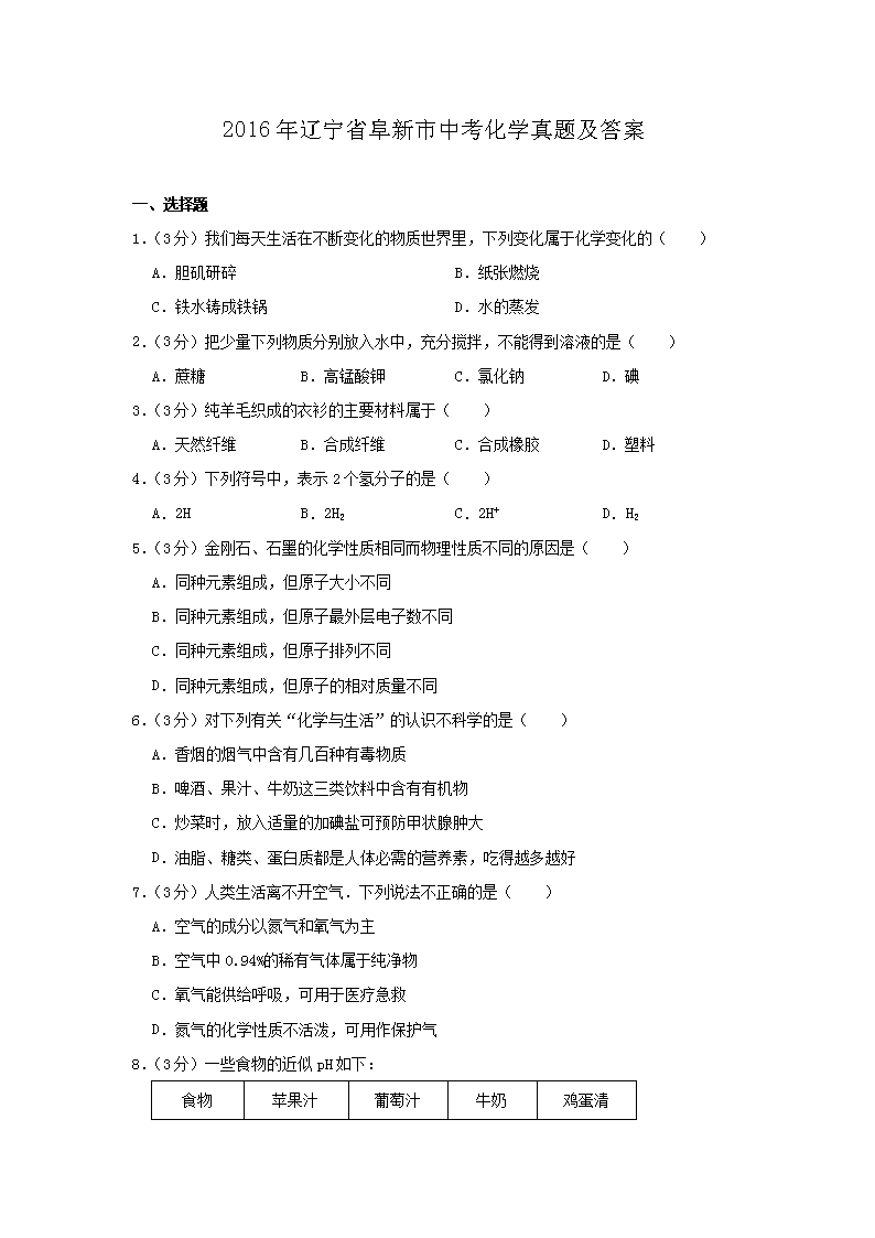 【文档名称】 2016年辽宁省阜新市中考化学真题及答案(Word版).doc