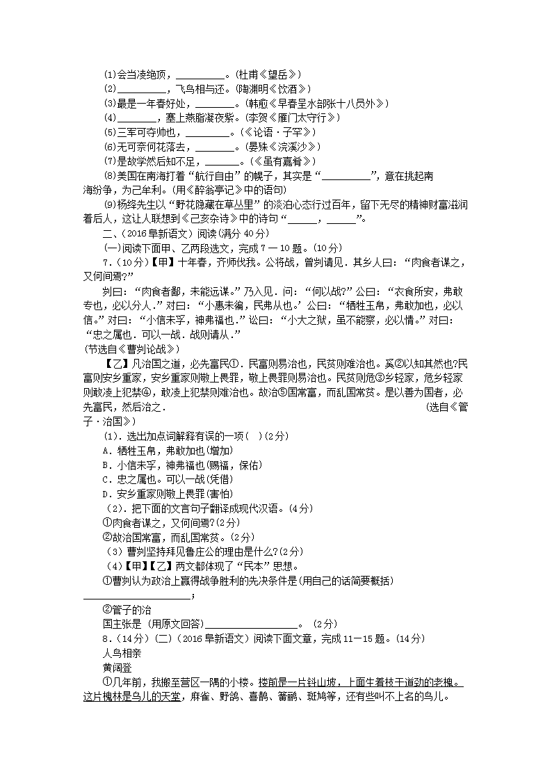 【文档预览】 无忧考网整理发布2016年辽宁省阜新市中考语文真题及答案(Word版),前五页预览如下: