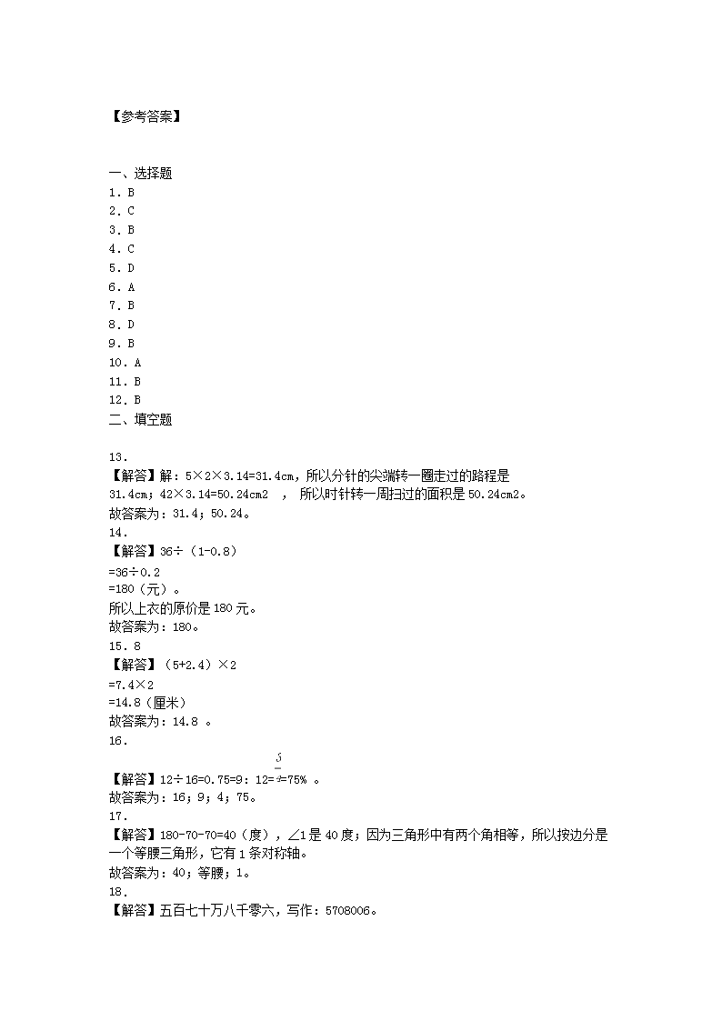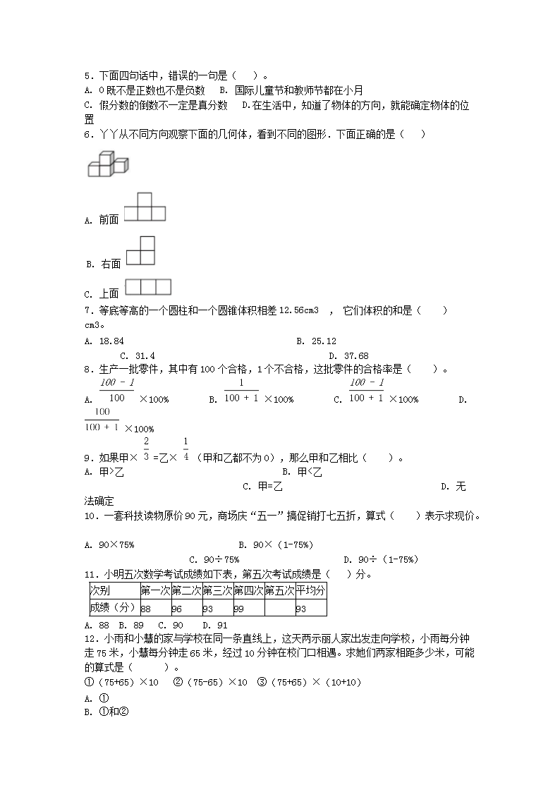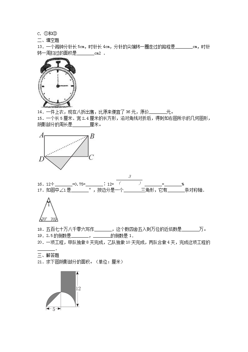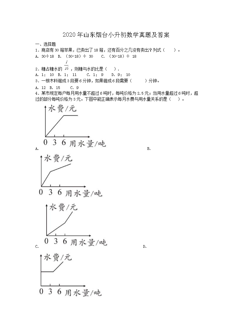 【文档名称】 2020年山东烟台小升初数学真题及答案(Word版).doc