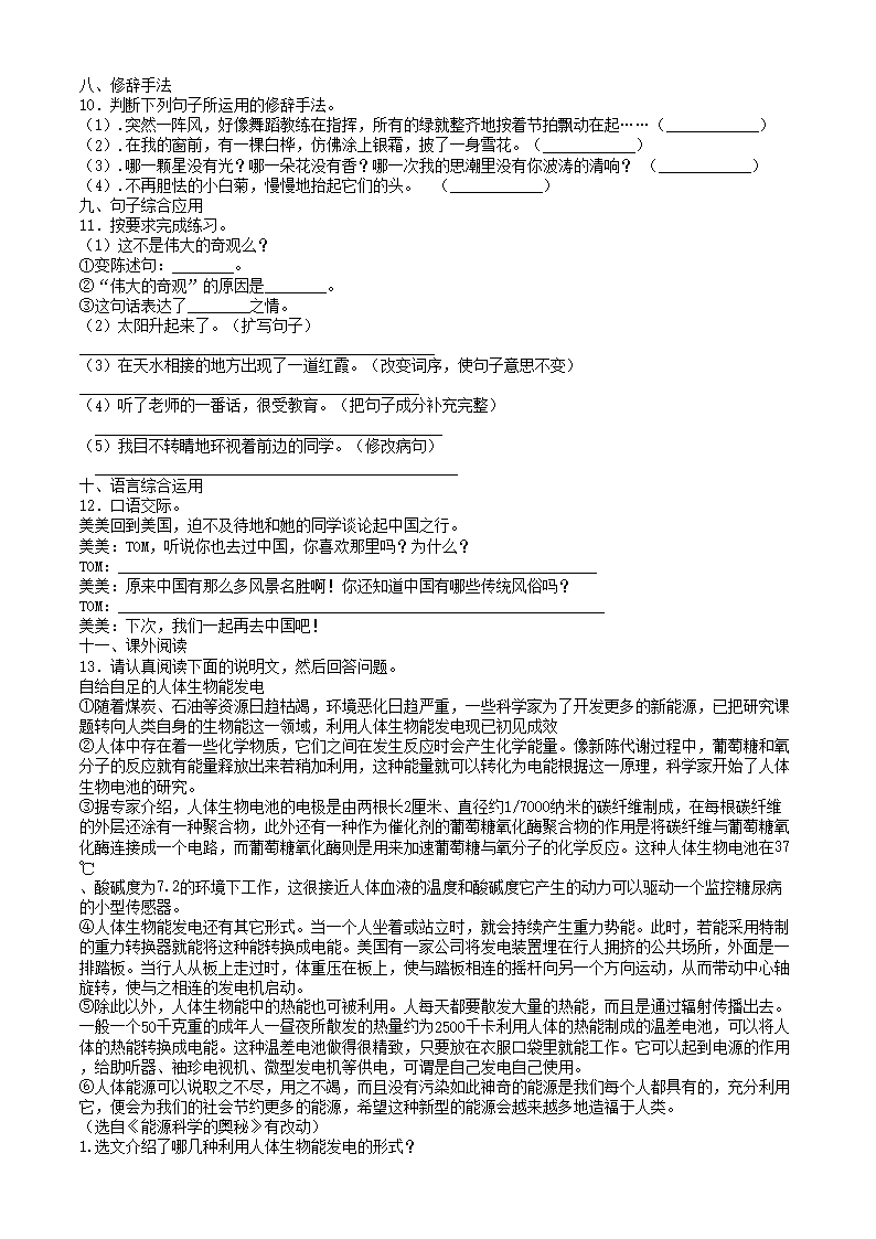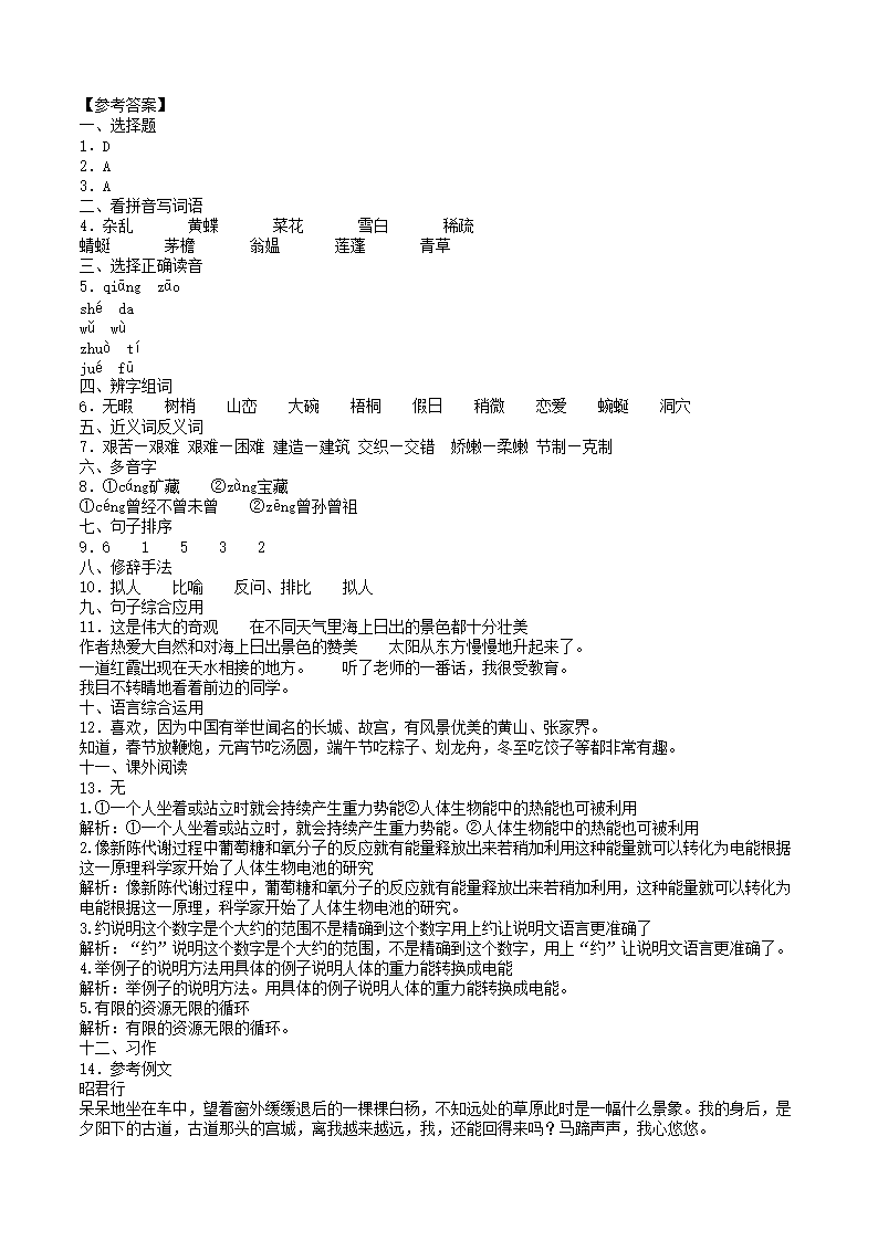 【文档名称】 2020年湖南省衡阳市小升初语文真题及答案(Word版).doc