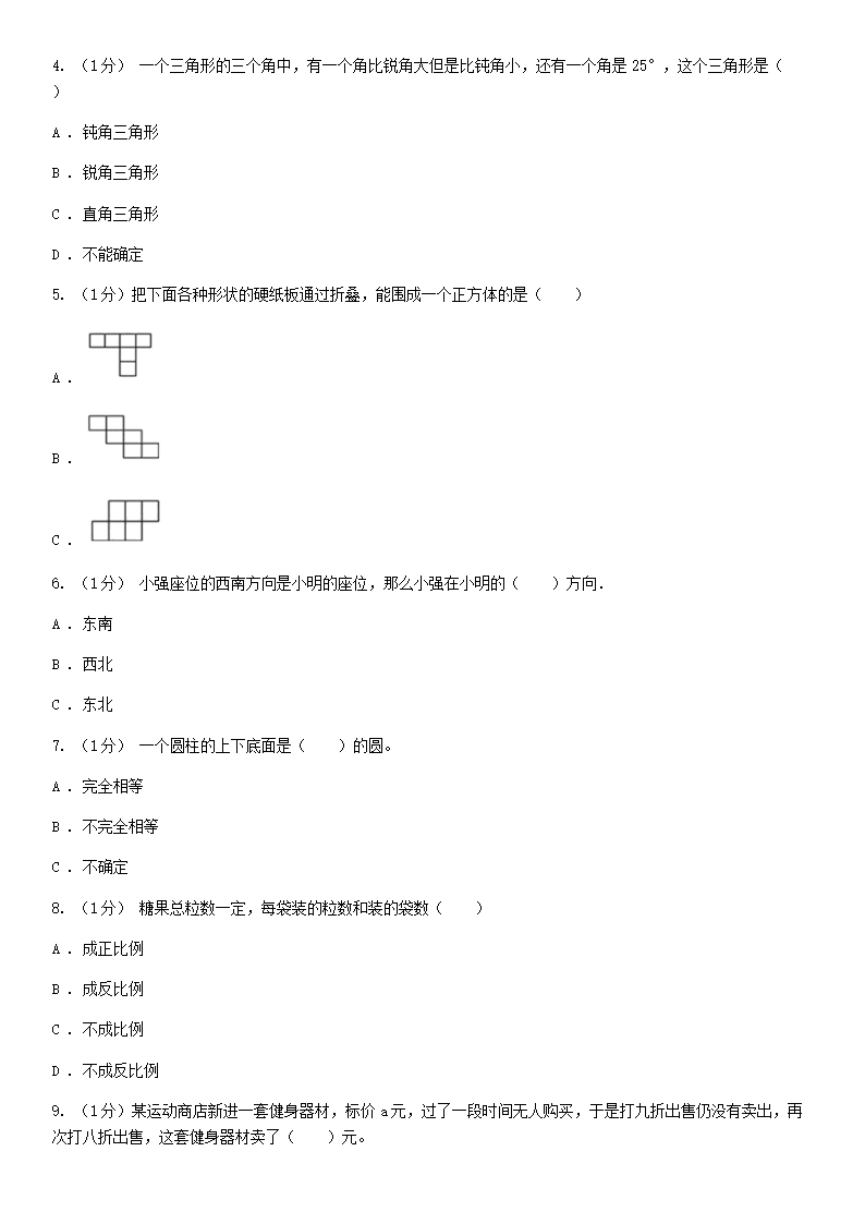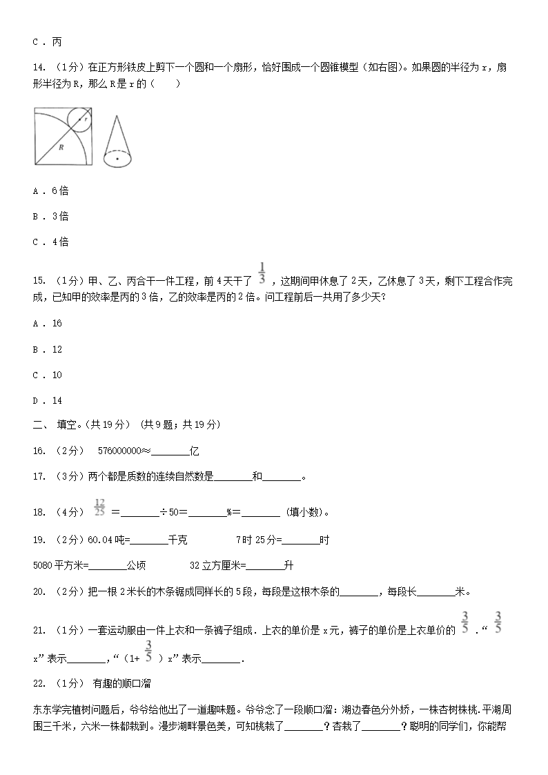 【文档名称】 2020年湖南省衡阳市小升初数学真题及答案(Word版).doc