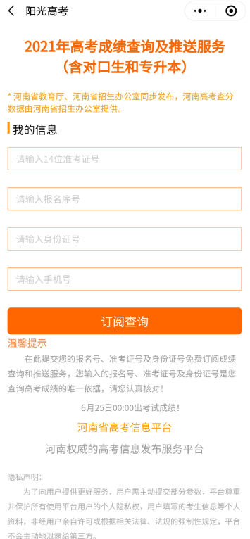 【#高考# #2021年河南高考成绩查询途径公布 关注河南省教育厅微信可预约查分#】®无忧考网从河南省教育厅获悉,2021年河南高考成绩查询途径已公布,6月25日零时起可查询,现在关注河南省教育厅微信可预约查分,具体详情如下: