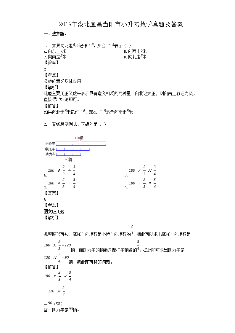 【文档名称】 2019年湖北宜昌当阳市小升初数学真题及答案(Word版).doc