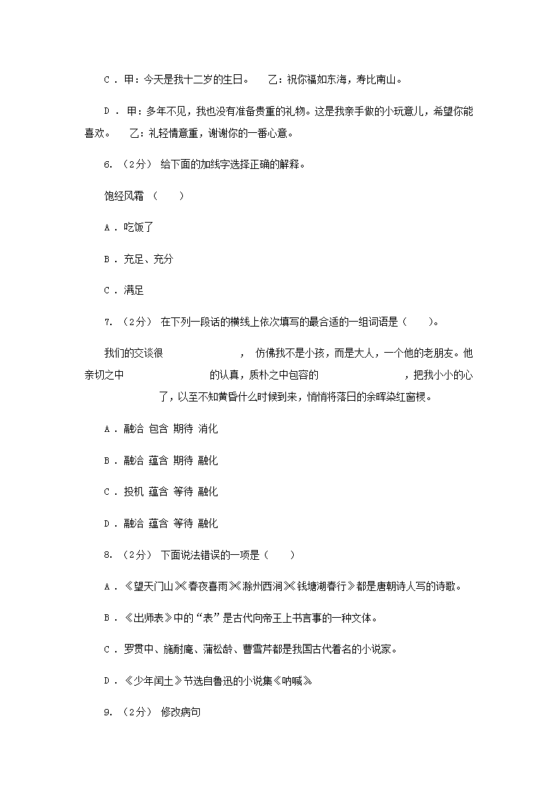【文档预览】 无忧考网整理发布2020年四川绵阳小升初语文真题及答案B卷(Word版),前五页预览如下: