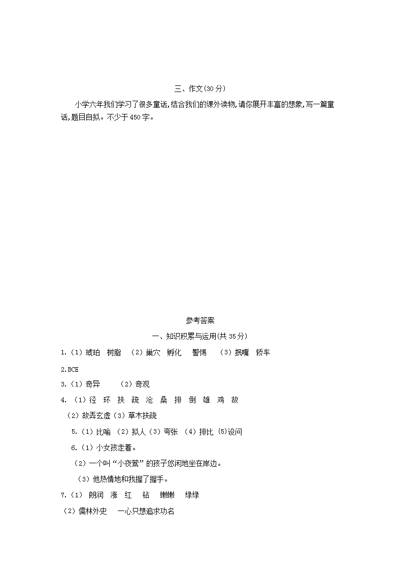 【文档预览】 无忧考网整理发布2019年四川绵阳小升初语文真题及答案(Word版),前五页预览如下:
