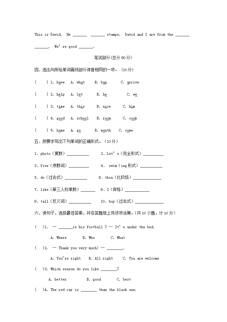 【文档名称】 2019年四川绵阳小升初英语真题及答案(Word版).doc