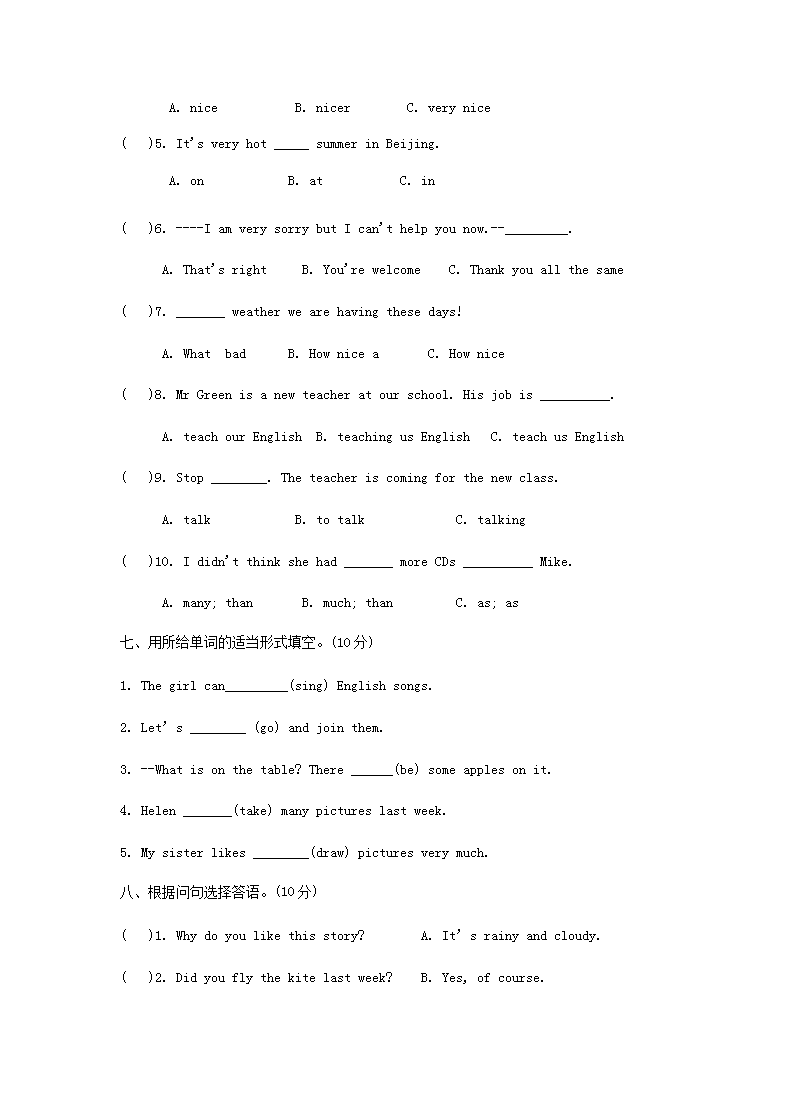 【文档预览】 无忧考网整理发布2019年四川绵阳小升初英语真题及答案(Word版),前五页预览如下: