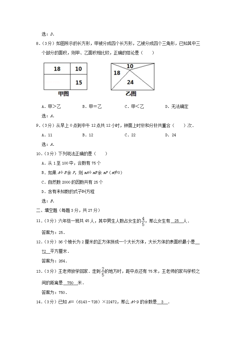 【文档名称】 2018年四川绵阳小升初数学真题及答案(Word版).doc