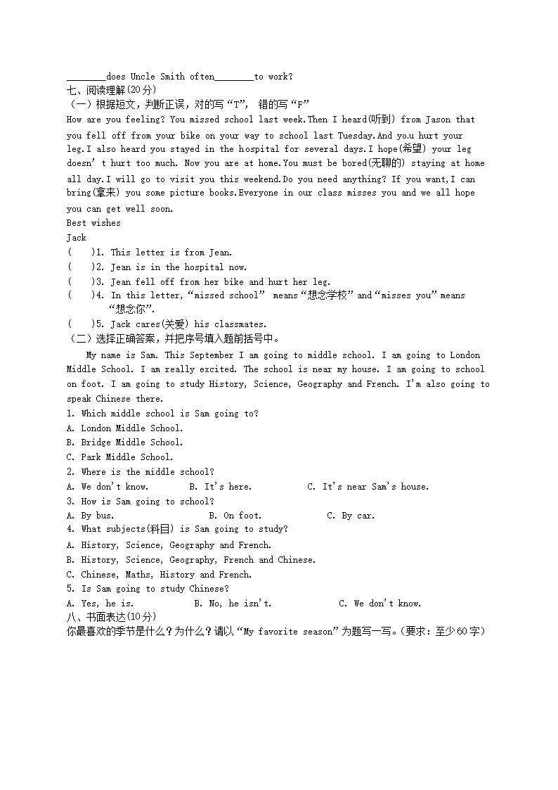 【文档名称】 2020年湖南省衡阳市小升初英真题及答案(Word版).doc
