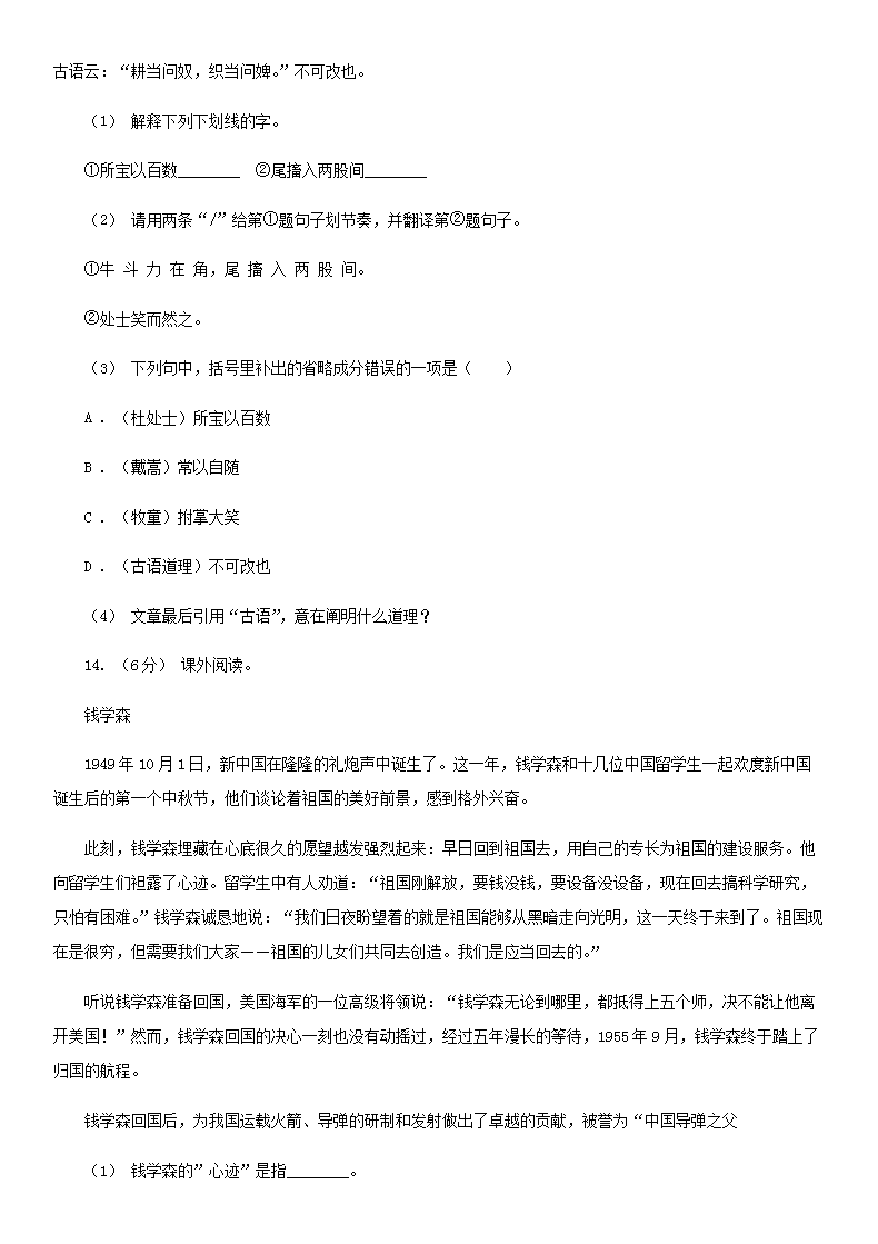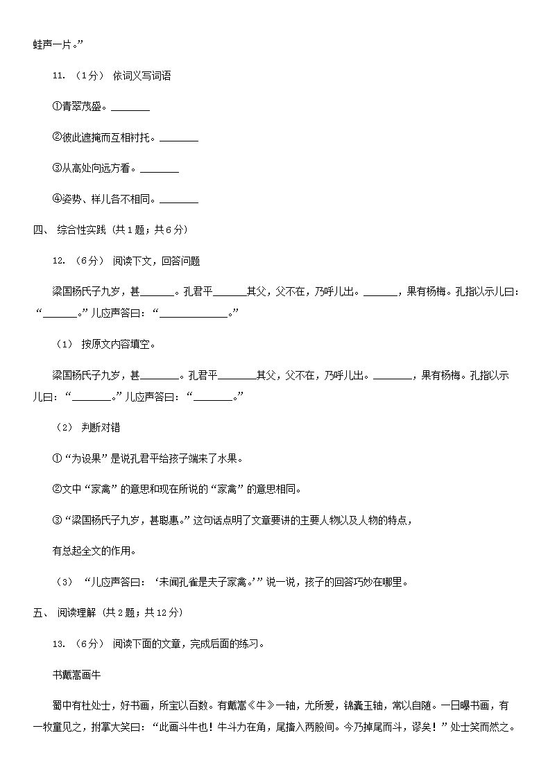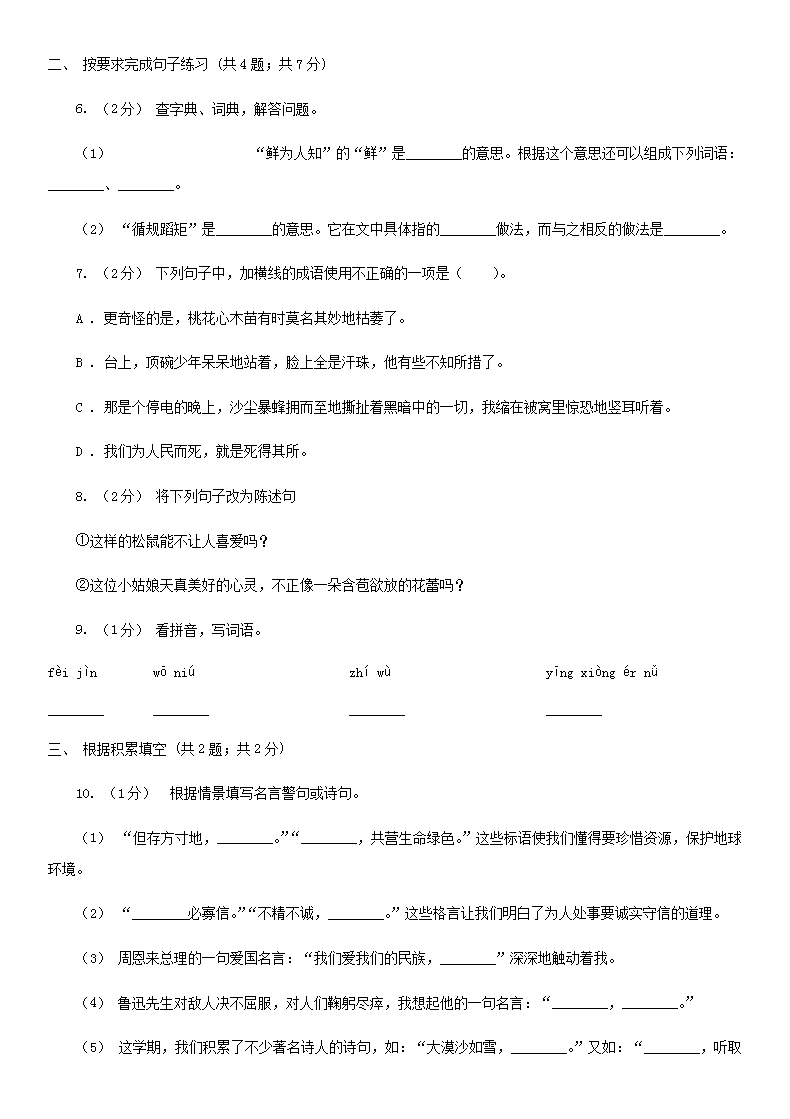 【文档名称】 2020年四川攀枝花小升初语文真题及答案I卷(Word版).doc