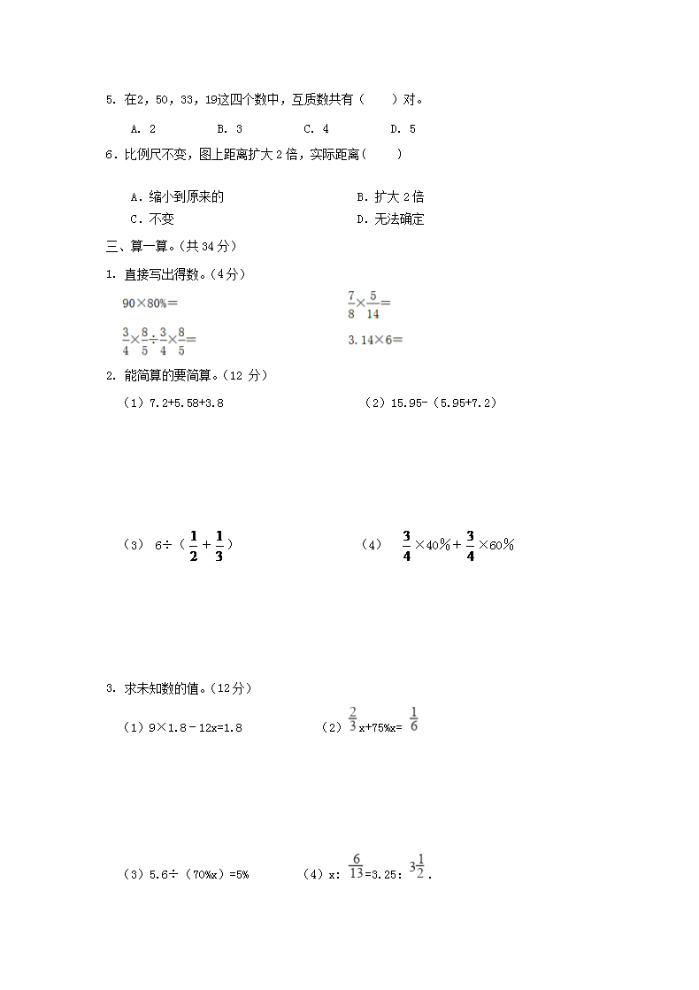 【文档名称】 2020年四川泸州小升初数学真题及答案(Word版).doc