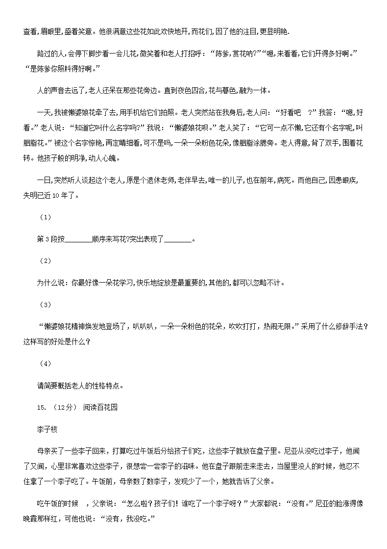 【文档名称】 2020年四川泸州小升初语文真题及答案C卷(Word版).doc