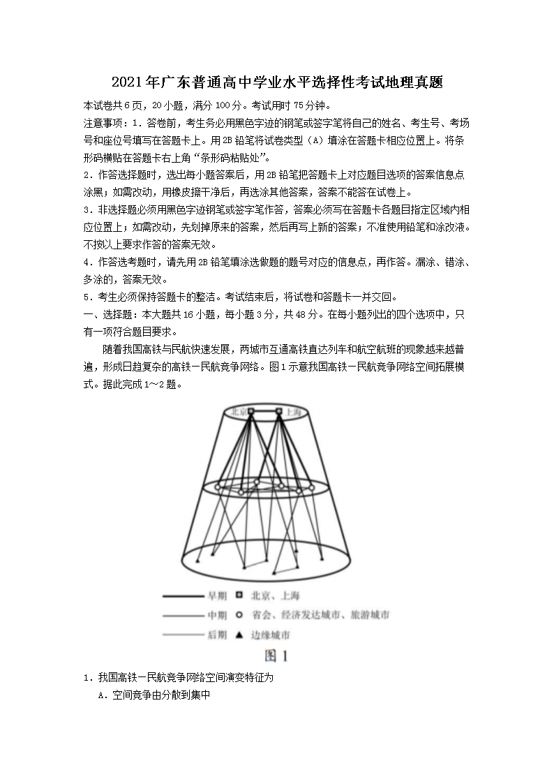 【文档名称】 2021年广东普通高中学业水平选择性考试地理真题(Word版).doc