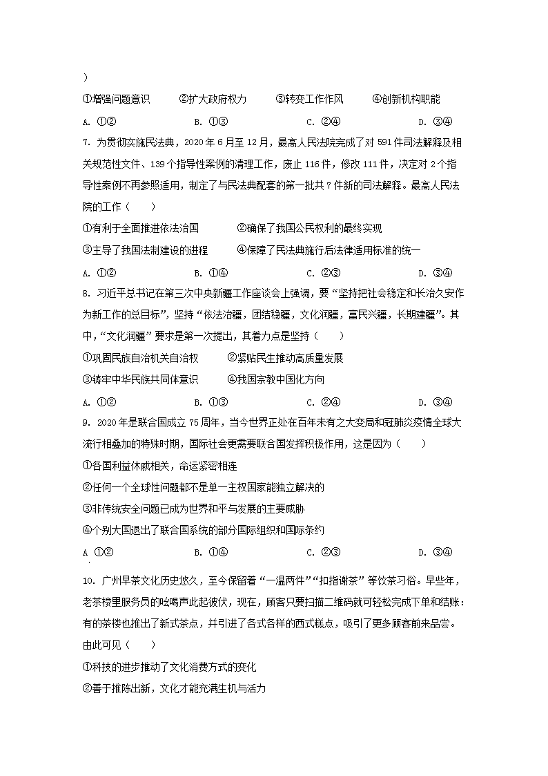 【文档名称】 2021年广东学考选择性政治真题及答案(Word版).doc