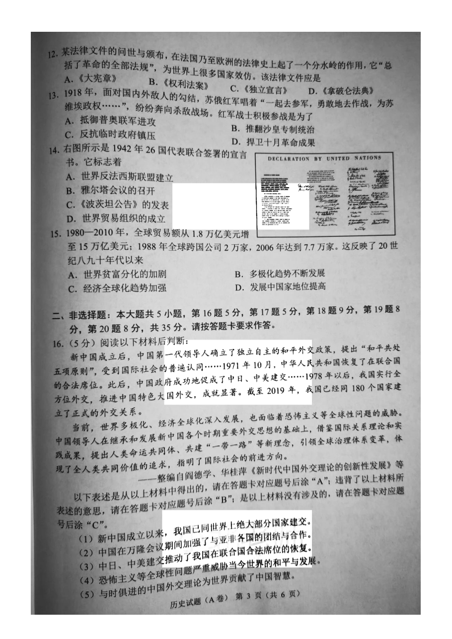 【文档名称】 2021重庆万州中考历史试题及答案(A卷)(图片版).doc