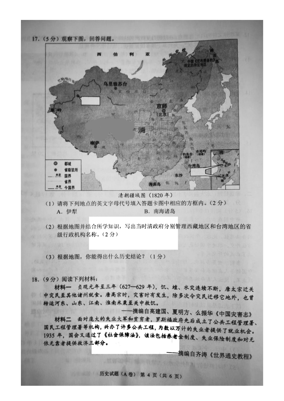 【文档名称】 2021重庆北碚中考历史试题及答案(A卷)(图片版).doc