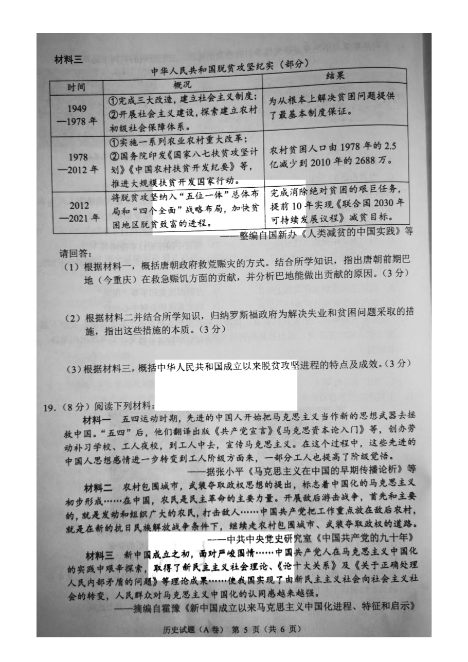 【文档名称】 2021重庆渝中中考历史试题及答案(A卷)(图片版).doc