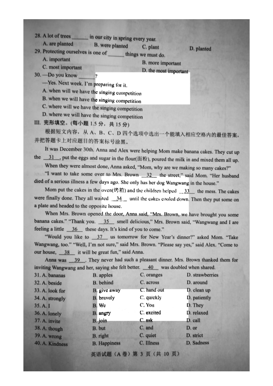 【文档名称】 2021重庆渝中中考英语试题及答案(A卷)(图片版).doc