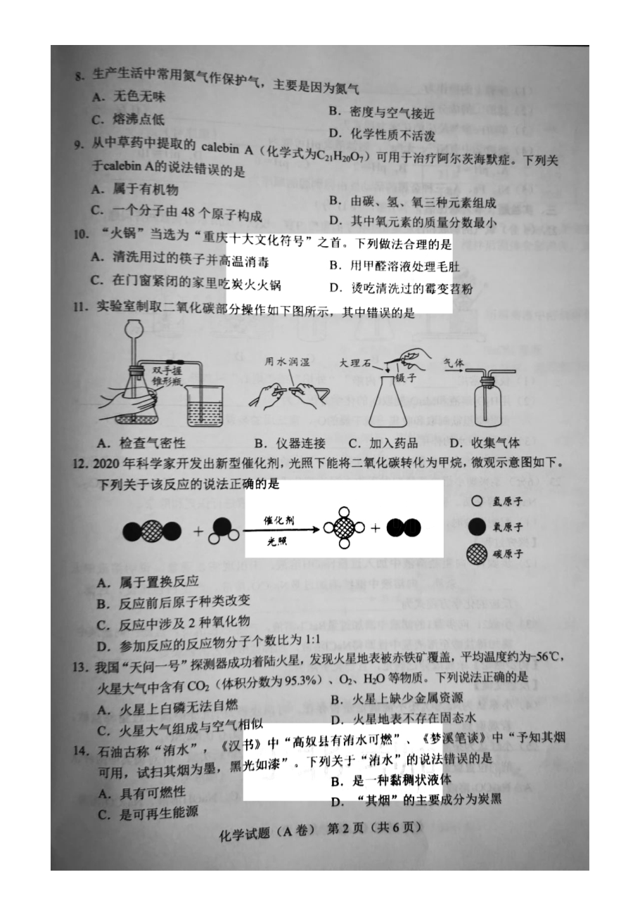 【文档名称】 2021重庆江津中考化学试题及答案(A卷)(图片版).doc