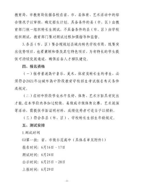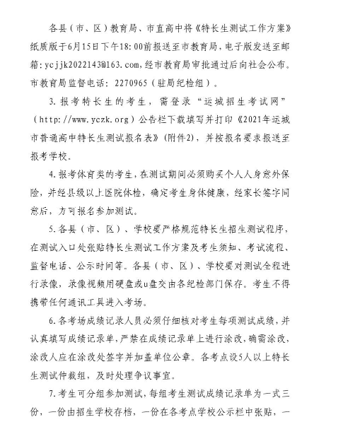 忧考网从运城市教育局了解到,2021年山西运城普通高中特长生招生工作的通知已经发布,为方便考生了解情况,现将有关事宜通知如下: