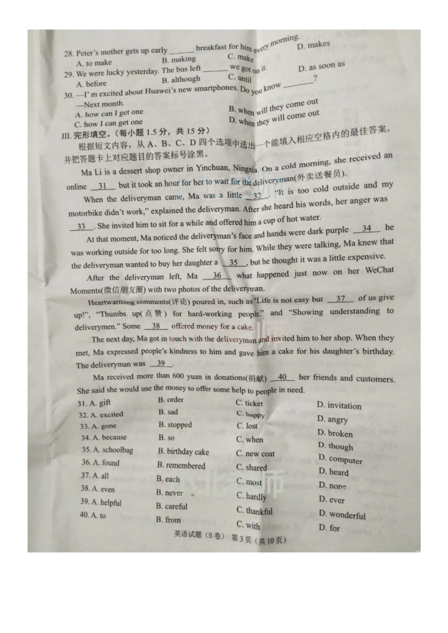 【文档名称】 2021重庆巴南中考英语试题及答案(B卷)(图片版).doc