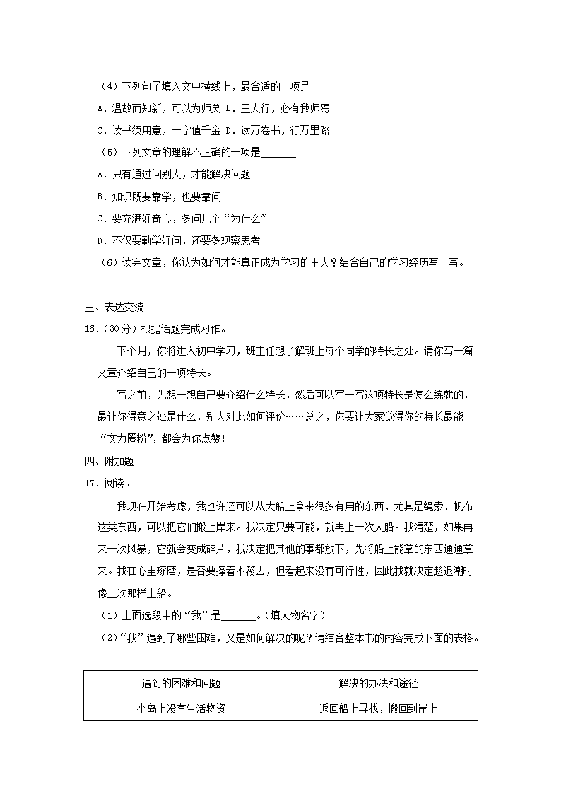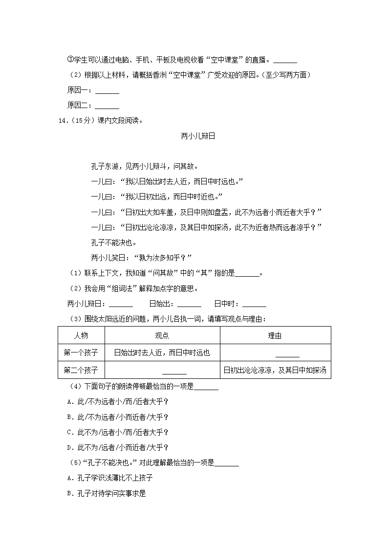 【文档预览】 无忧考网整理发布2020年广东省珠海市香洲区小升初语文真题及答案(Word版),前五页预览如下: