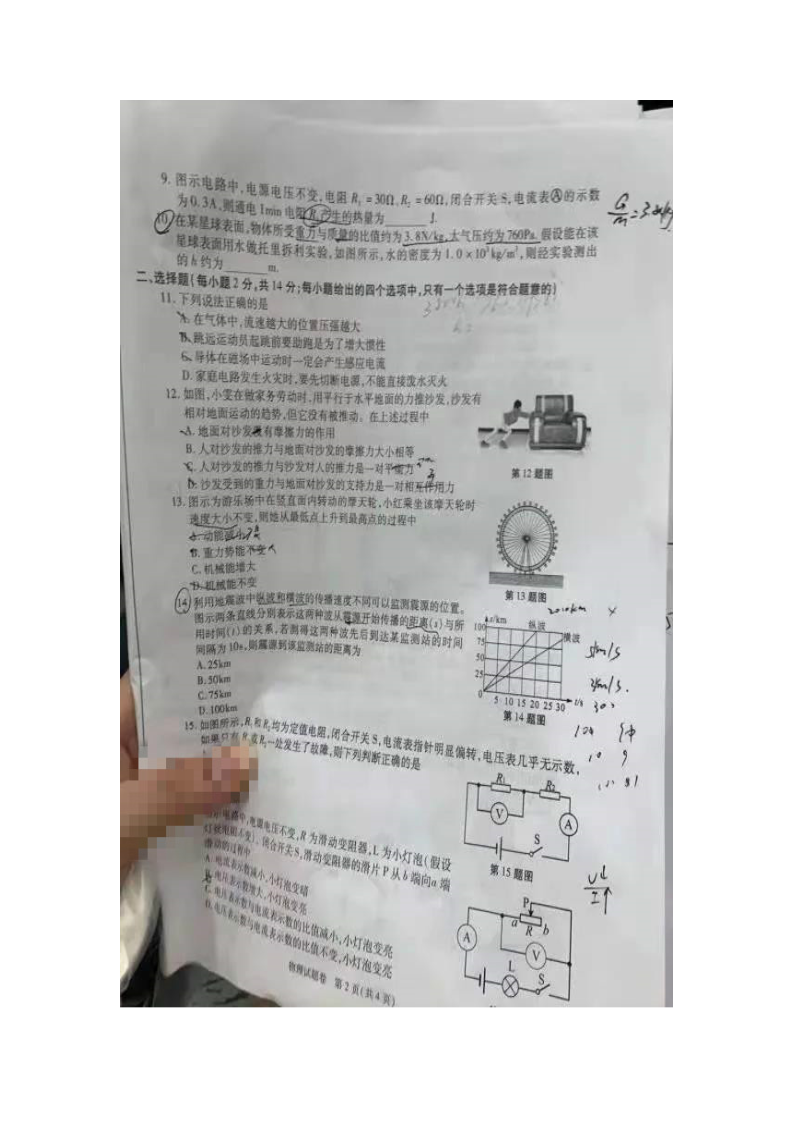 【文档名称】 2021年安徽六安中考物理试题及答案(图片版).doc