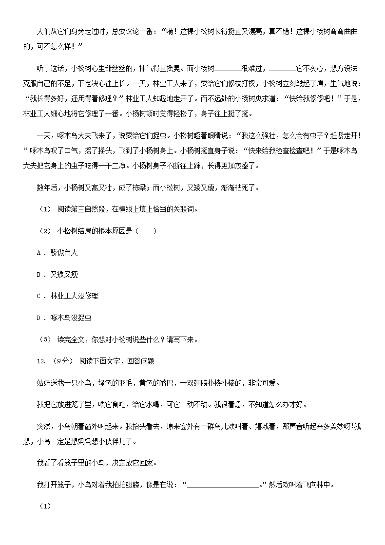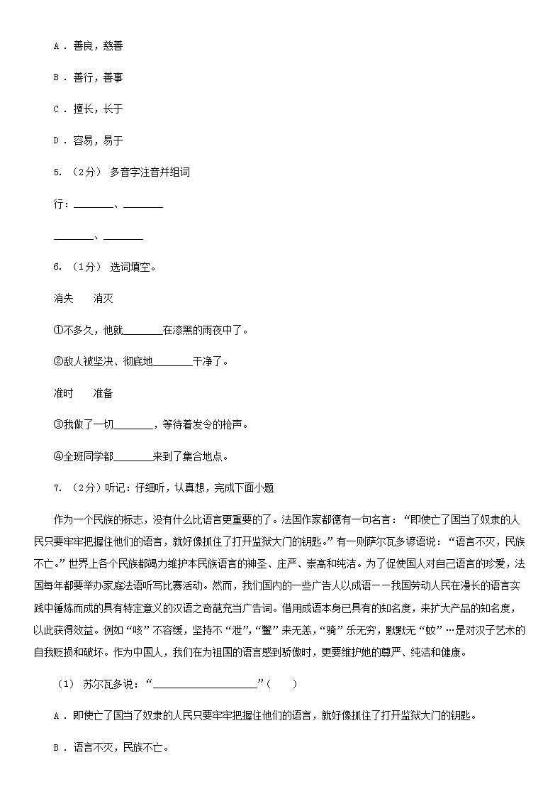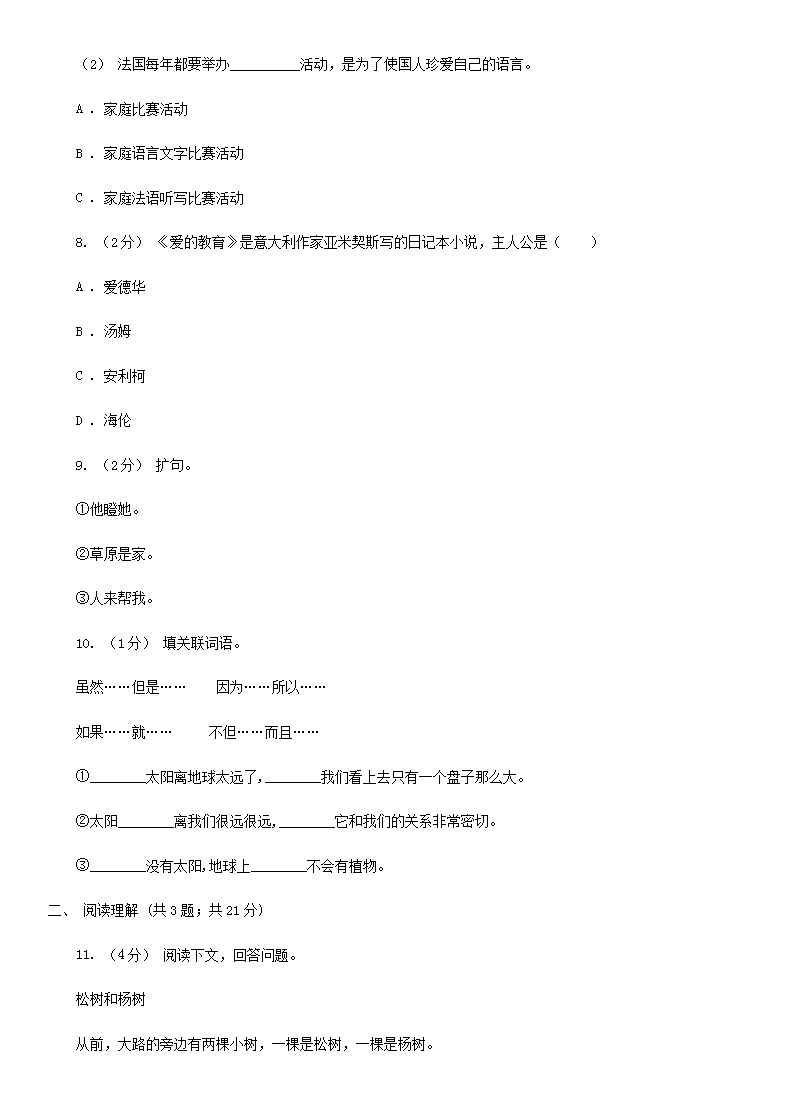 【文档名称】 2020年四川内江小升初语文真题及答案B卷(Word版).doc