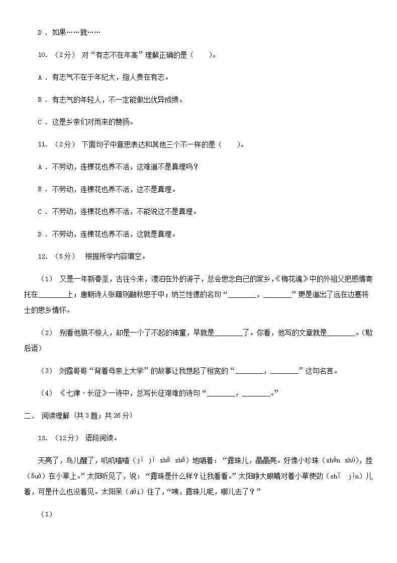 【文档名称】 2020年四川内江小升初语文真题及答案A卷(Word版).doc