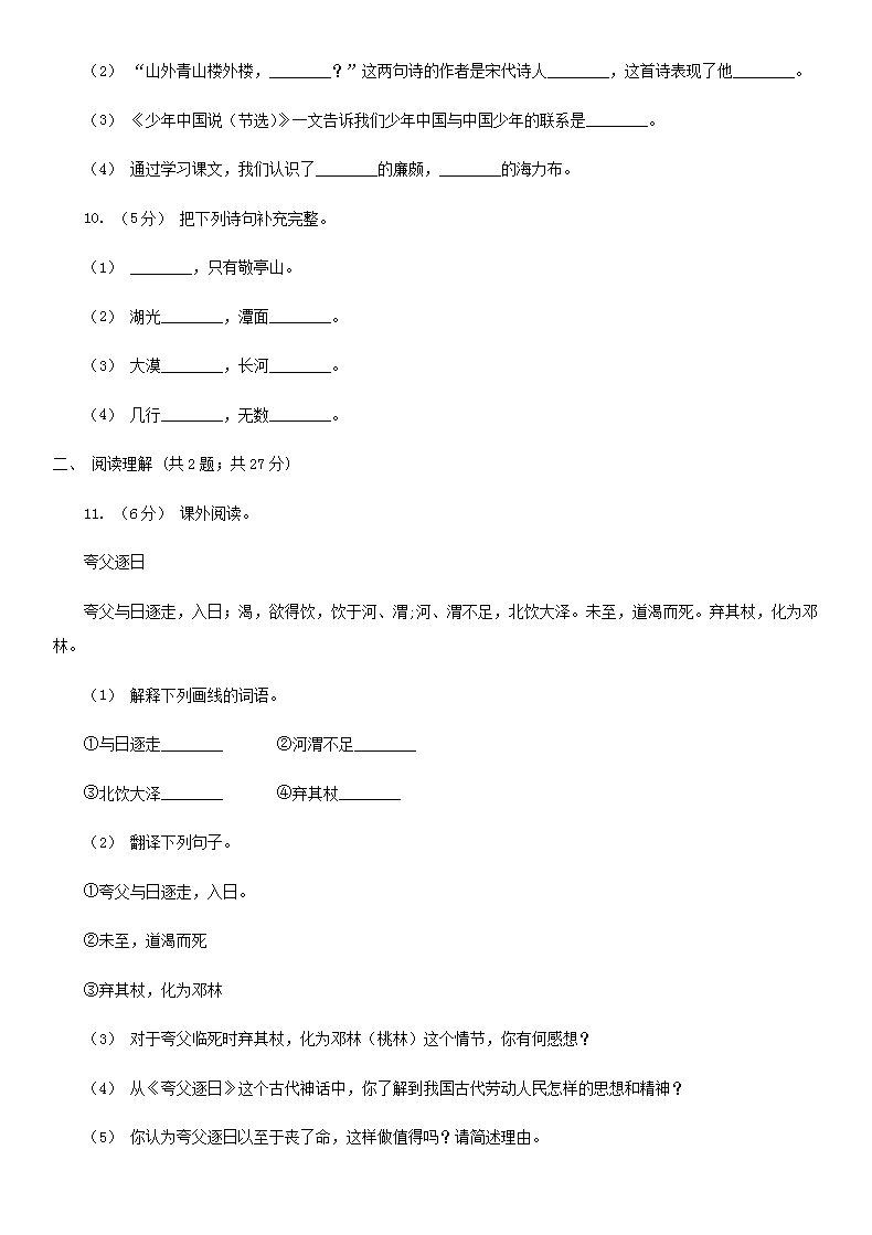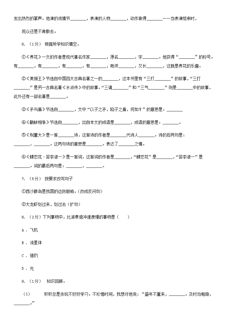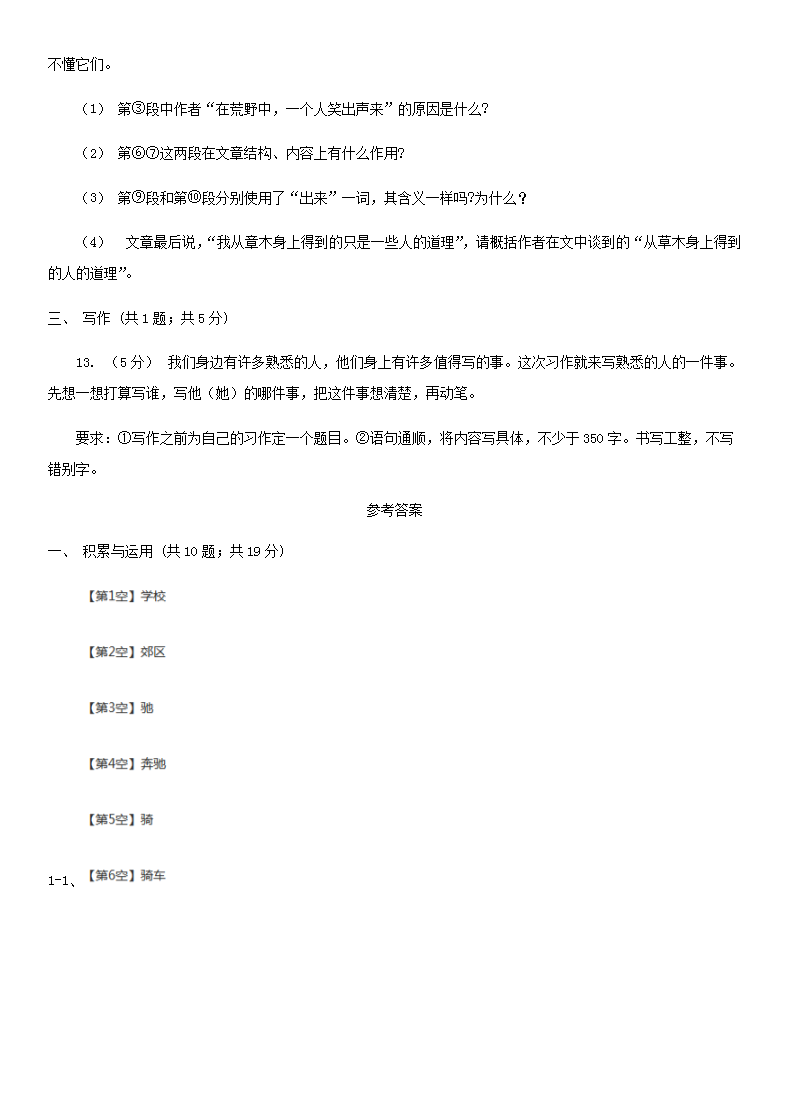 【文档名称】 2020年四川乐山小升初语文真题及答案B卷(Word版).doc