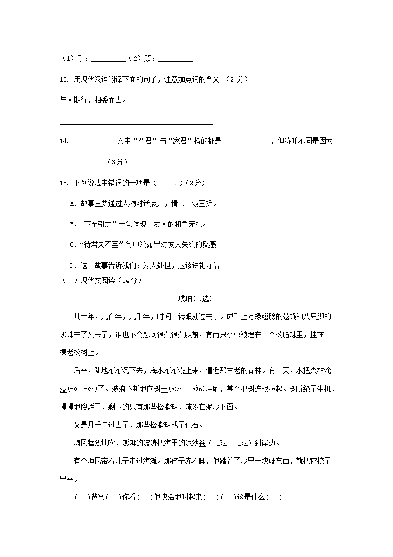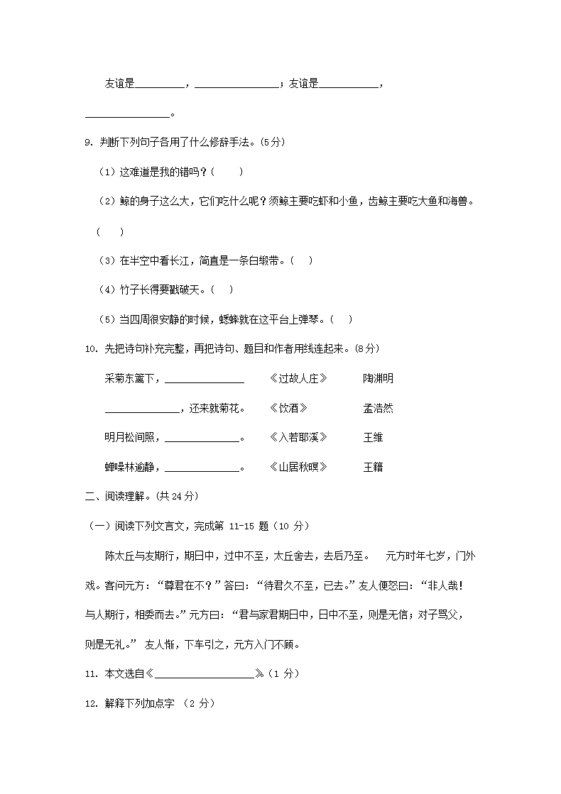【文档名称】 2019年四川乐山小升初语文真题及答案(Word版).doc